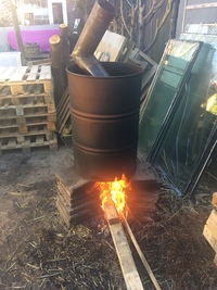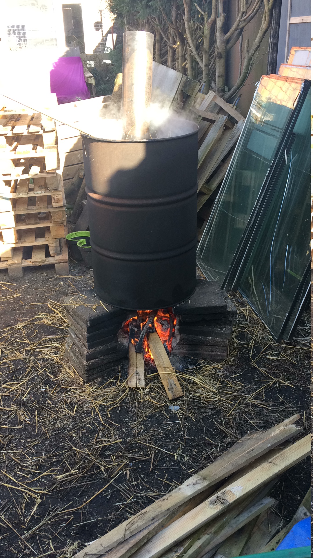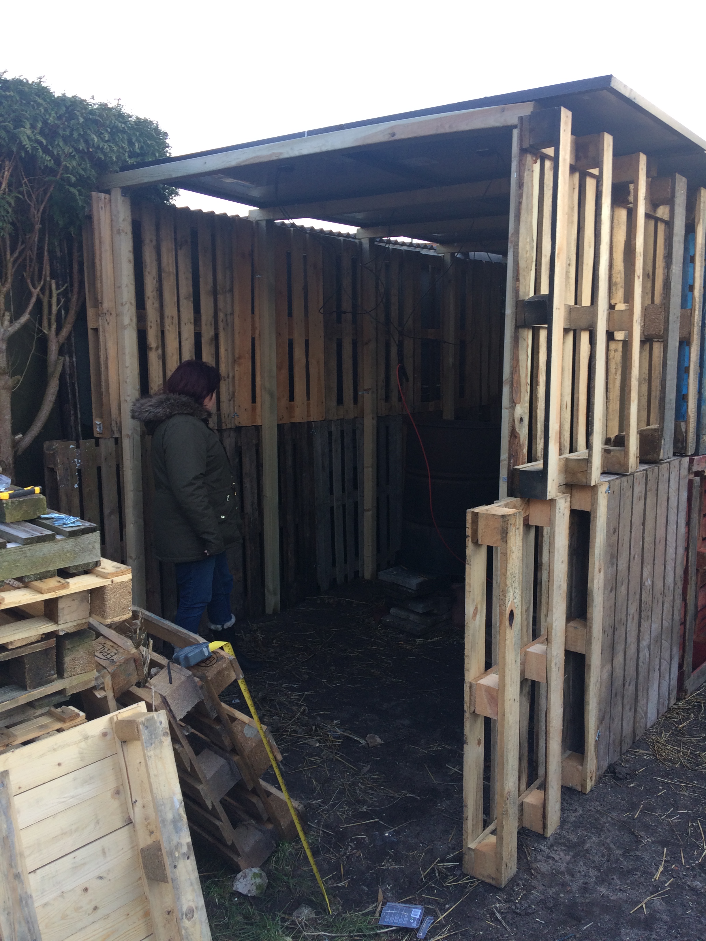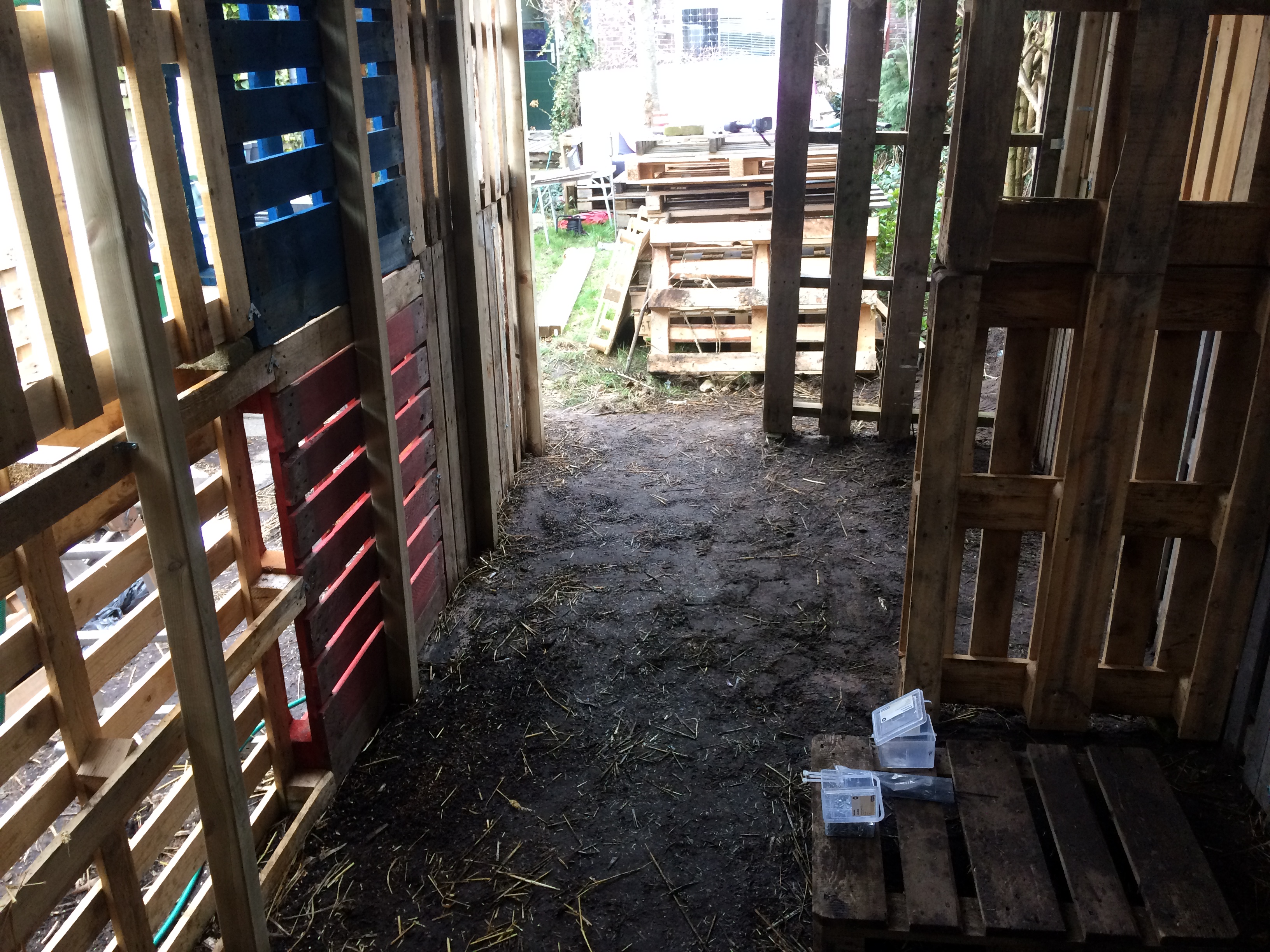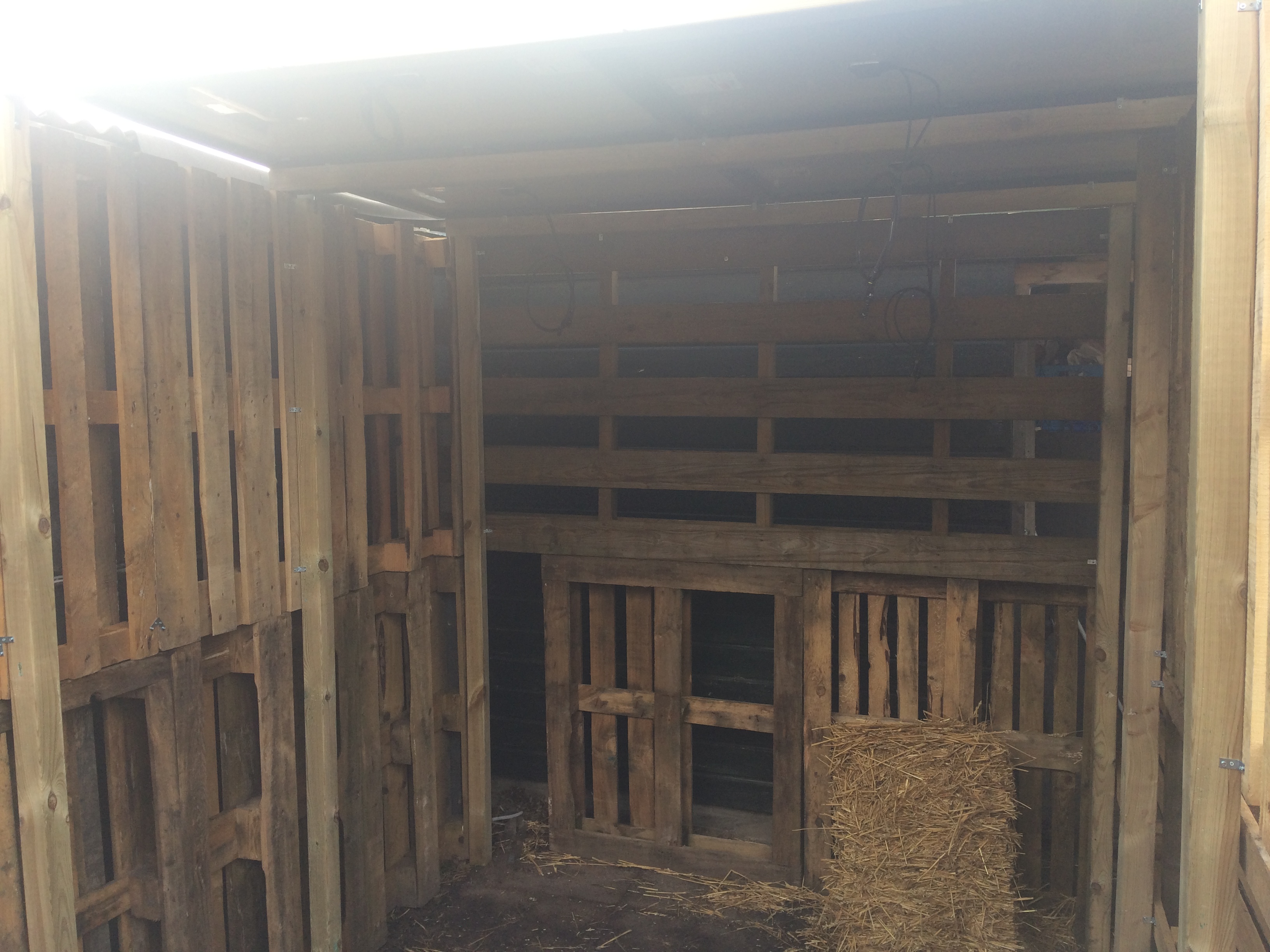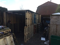 De schuur word gebouwd van oude pallets en tuinhek palen. Het dak word gemaakt van zonnepanelen. De proces besturing word gedaan door een Raspberry Pi.