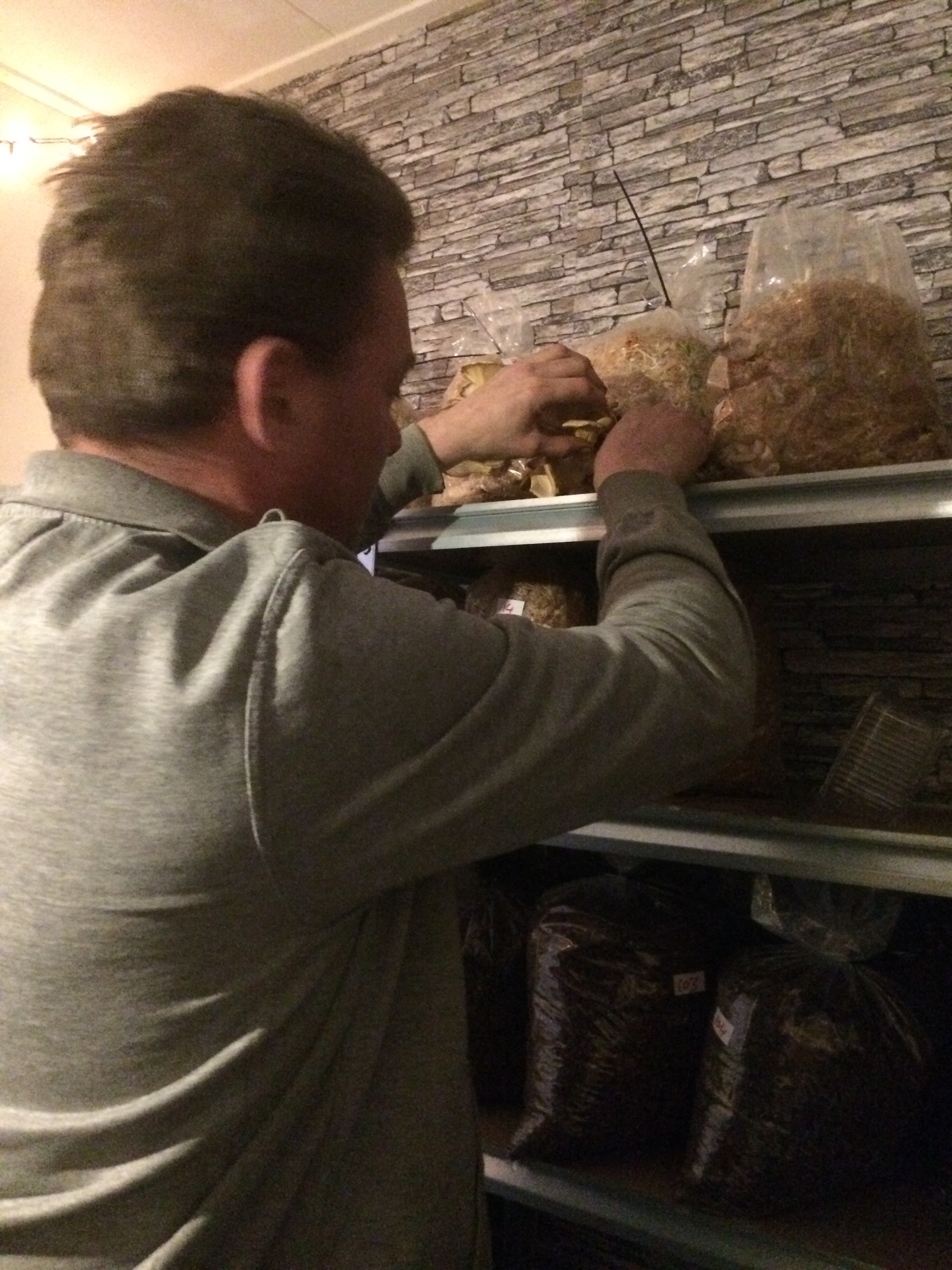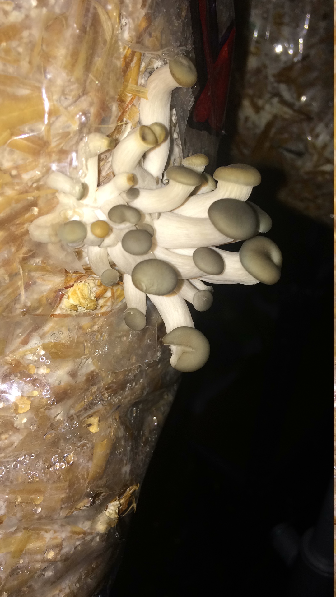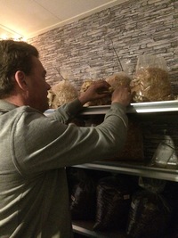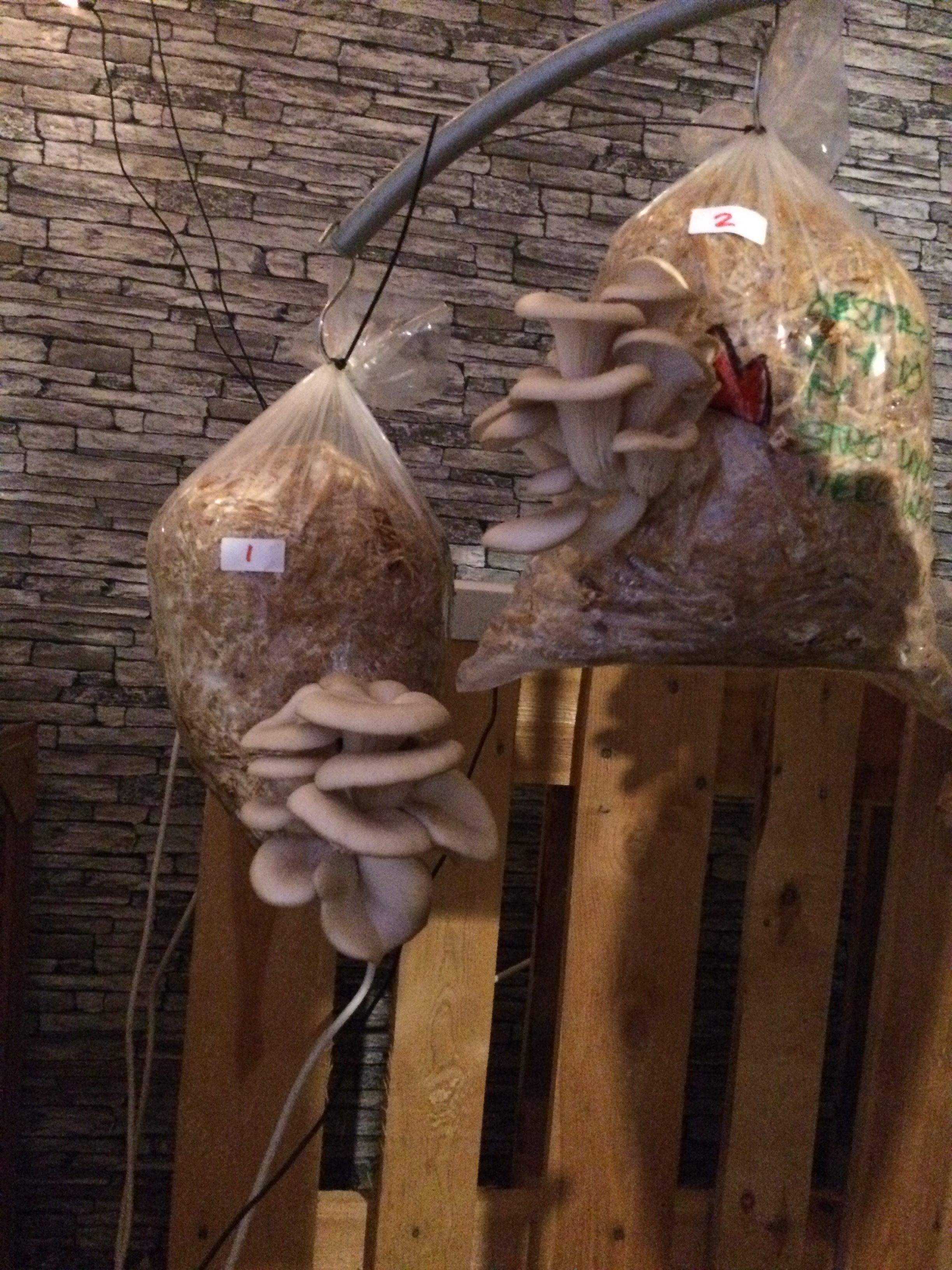 Ik heb ontdekt waarom de Oesterzwammen bruin worden en waarom sommige pinnen niet verder willen groeien. De luchtvochtigheid is door de kou maar 20% van de normale waarde. Daar kunnen ze niet tegen. Ik moet nu snel een "vochtkamer" bouwen om de rest van de oogst te redden van de verdroging.