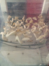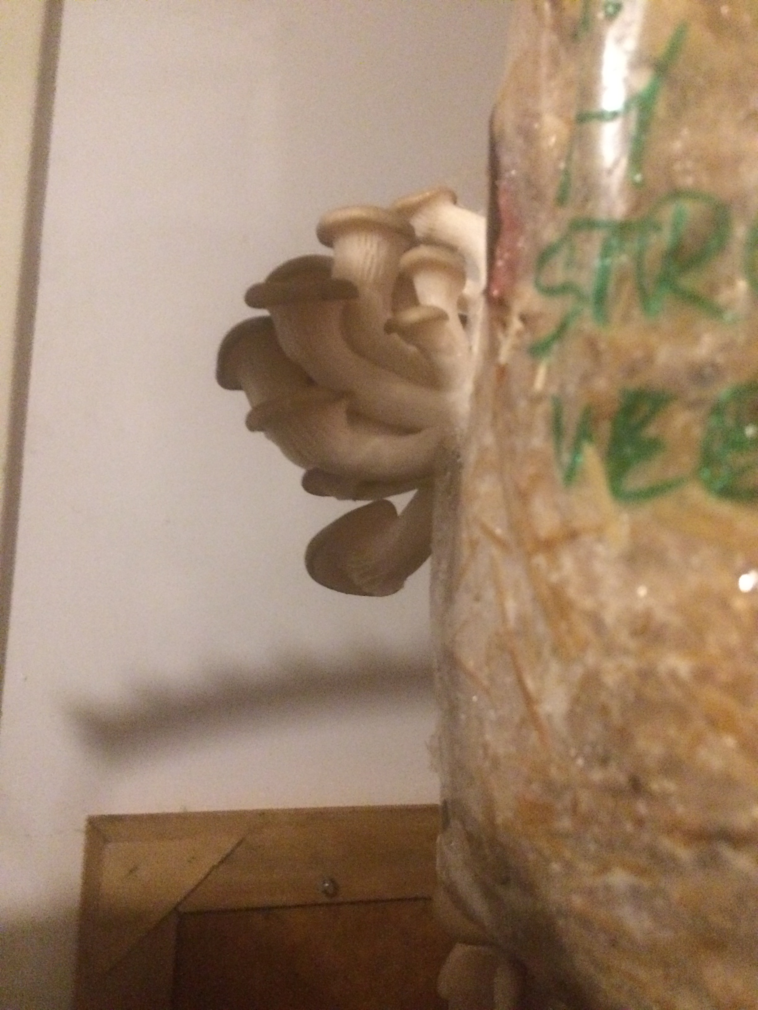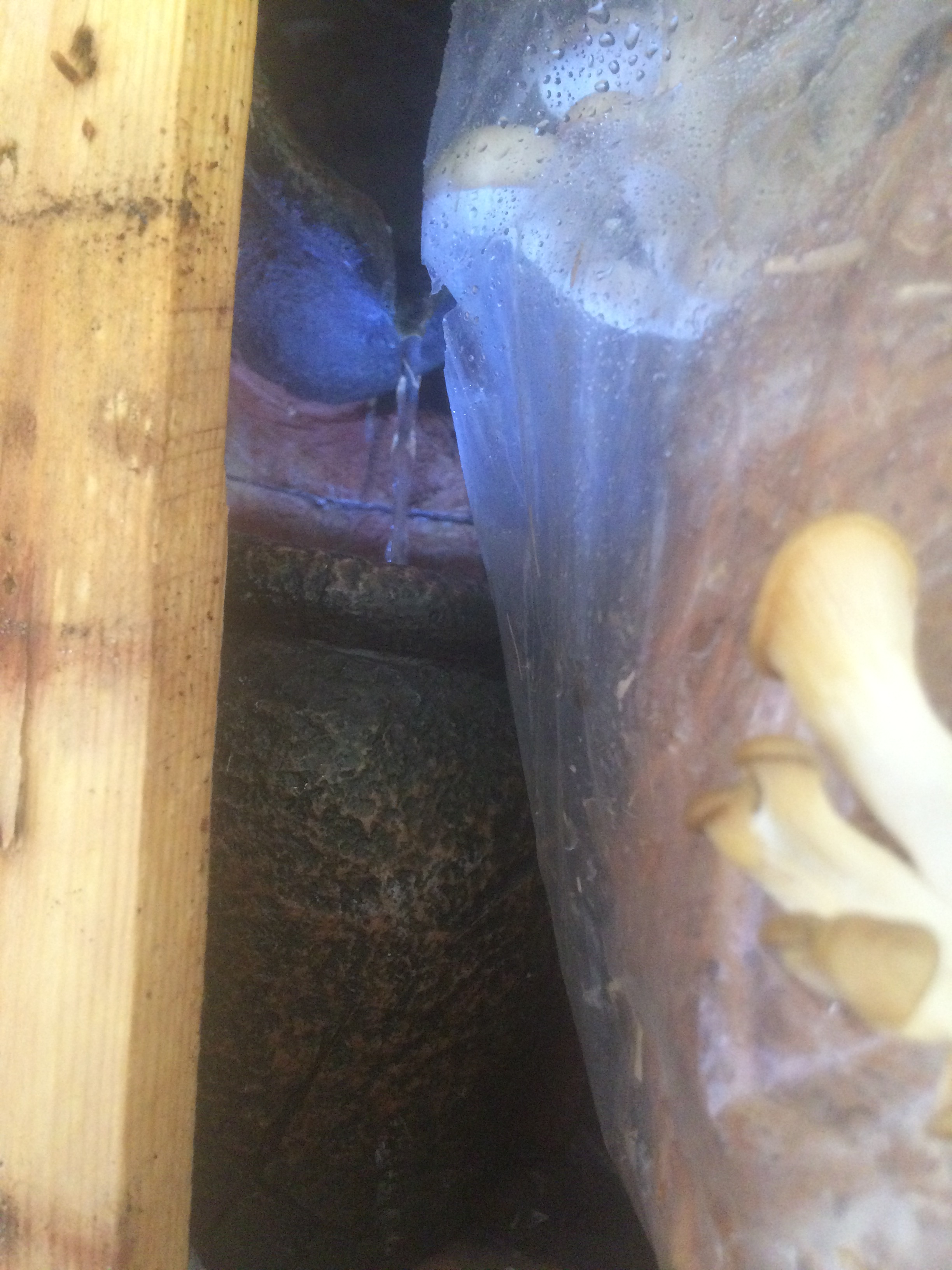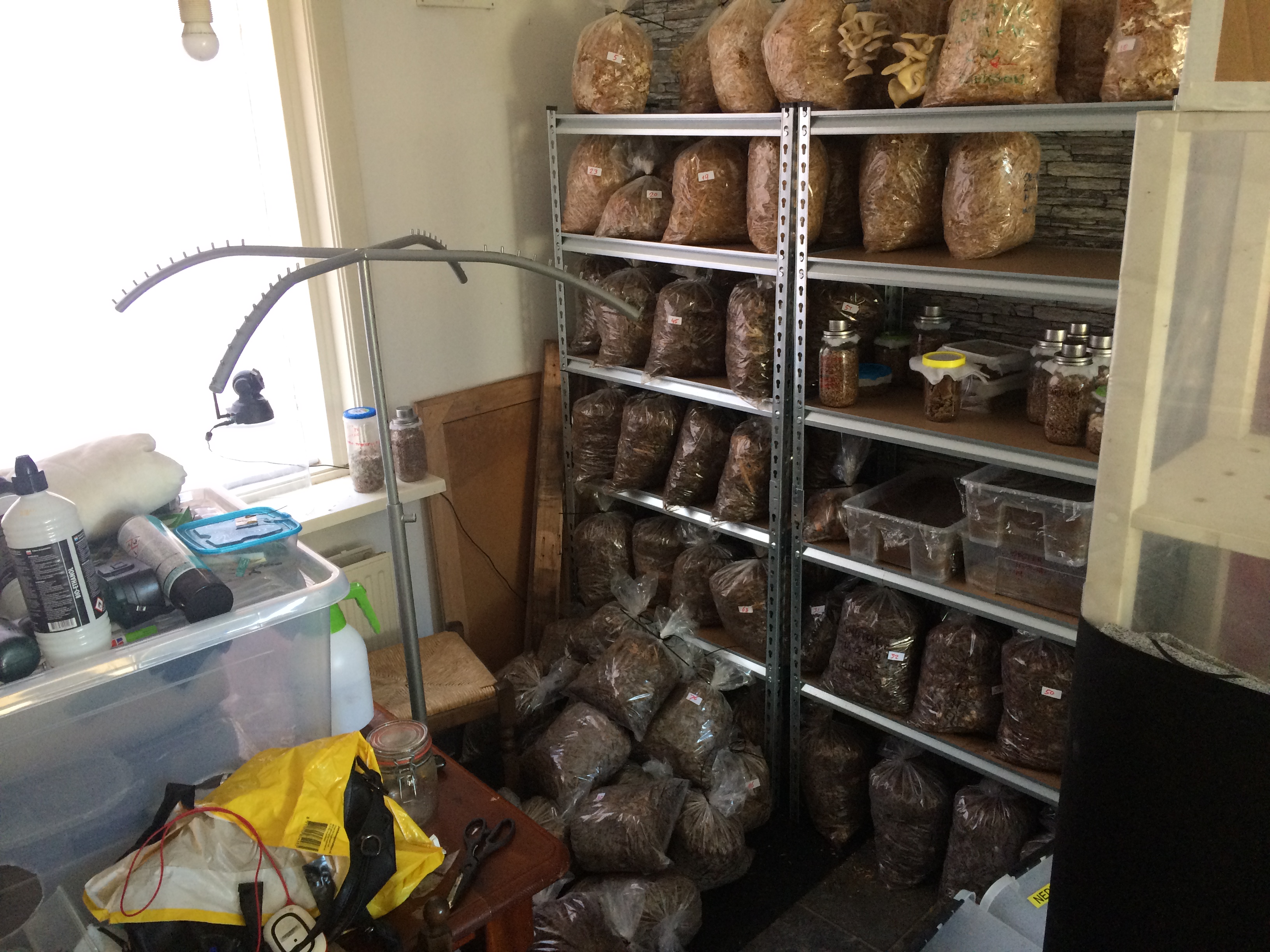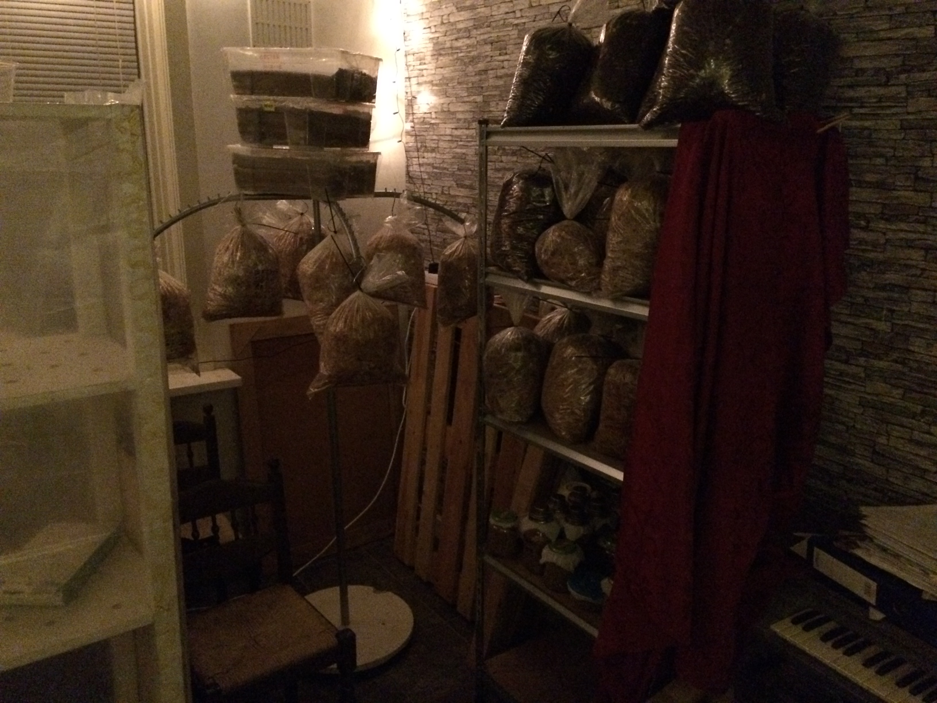Ik heb ontdekt waarom de Oesterzwammen bruin worden en waarom sommige pinnen niet verder willen groeien. De luchtvochtigheid is door de kou maar 20% van de normale waarde. Daar kunnen ze niet tegen. Ik moet nu snel een "vochtkamer" bouwen om de rest van de oogst te redden van de verdroging.