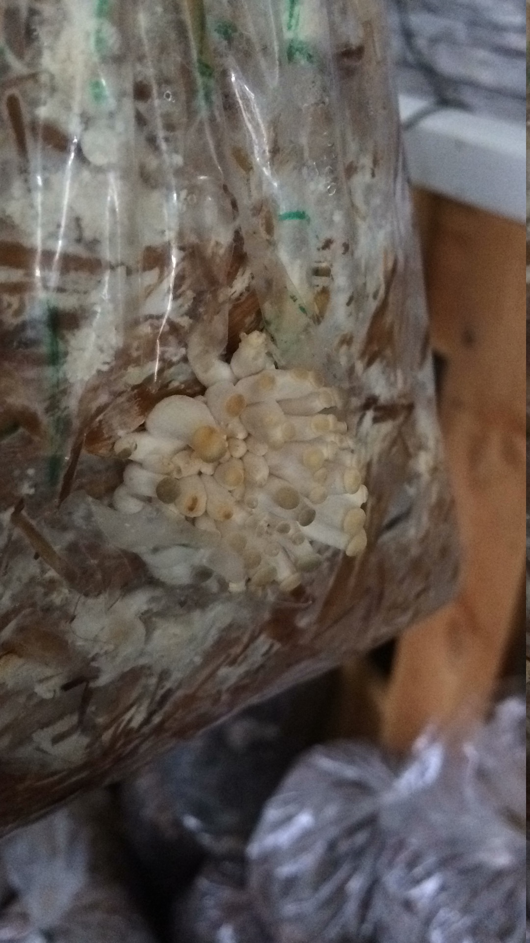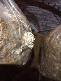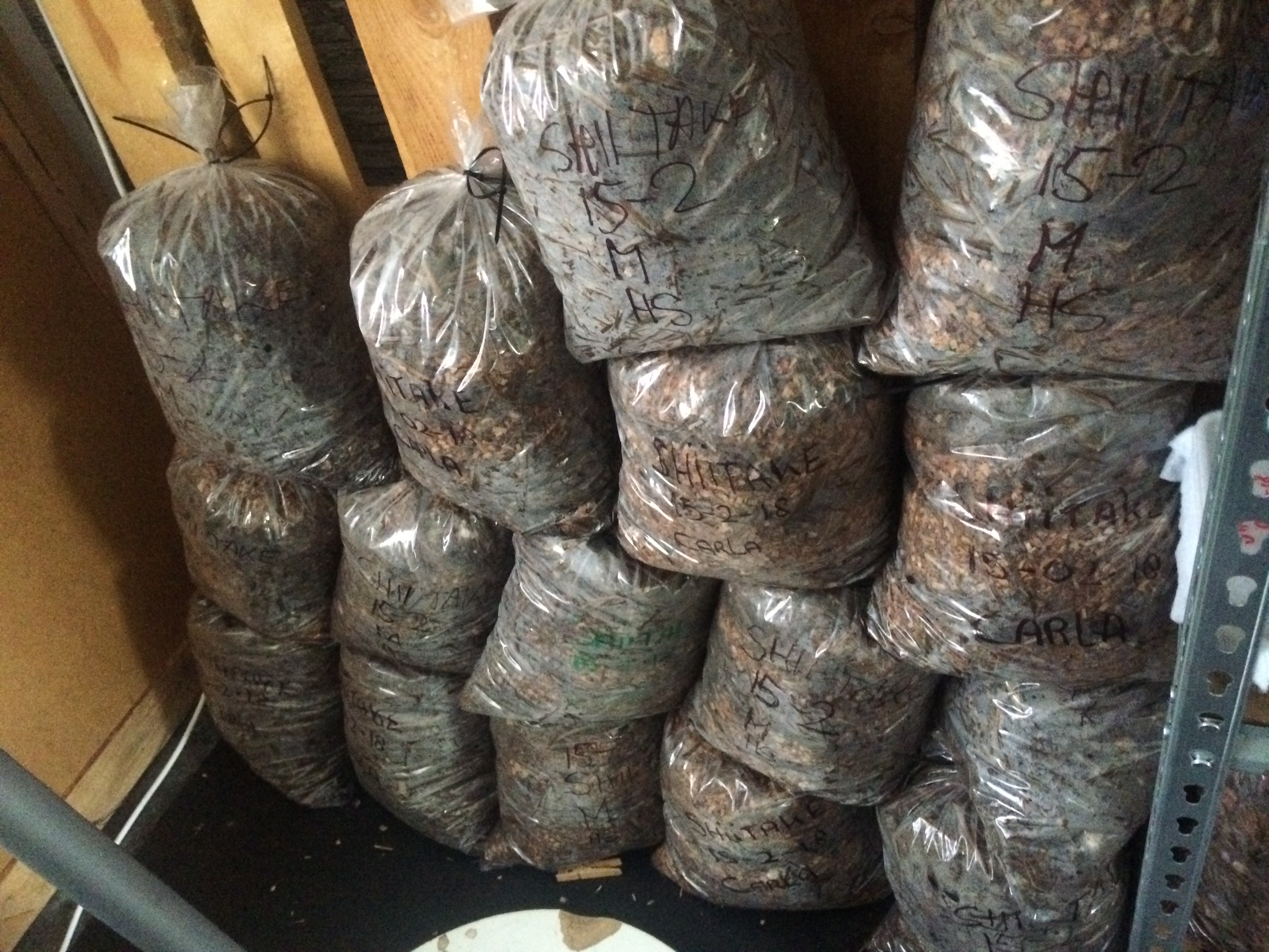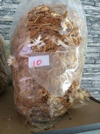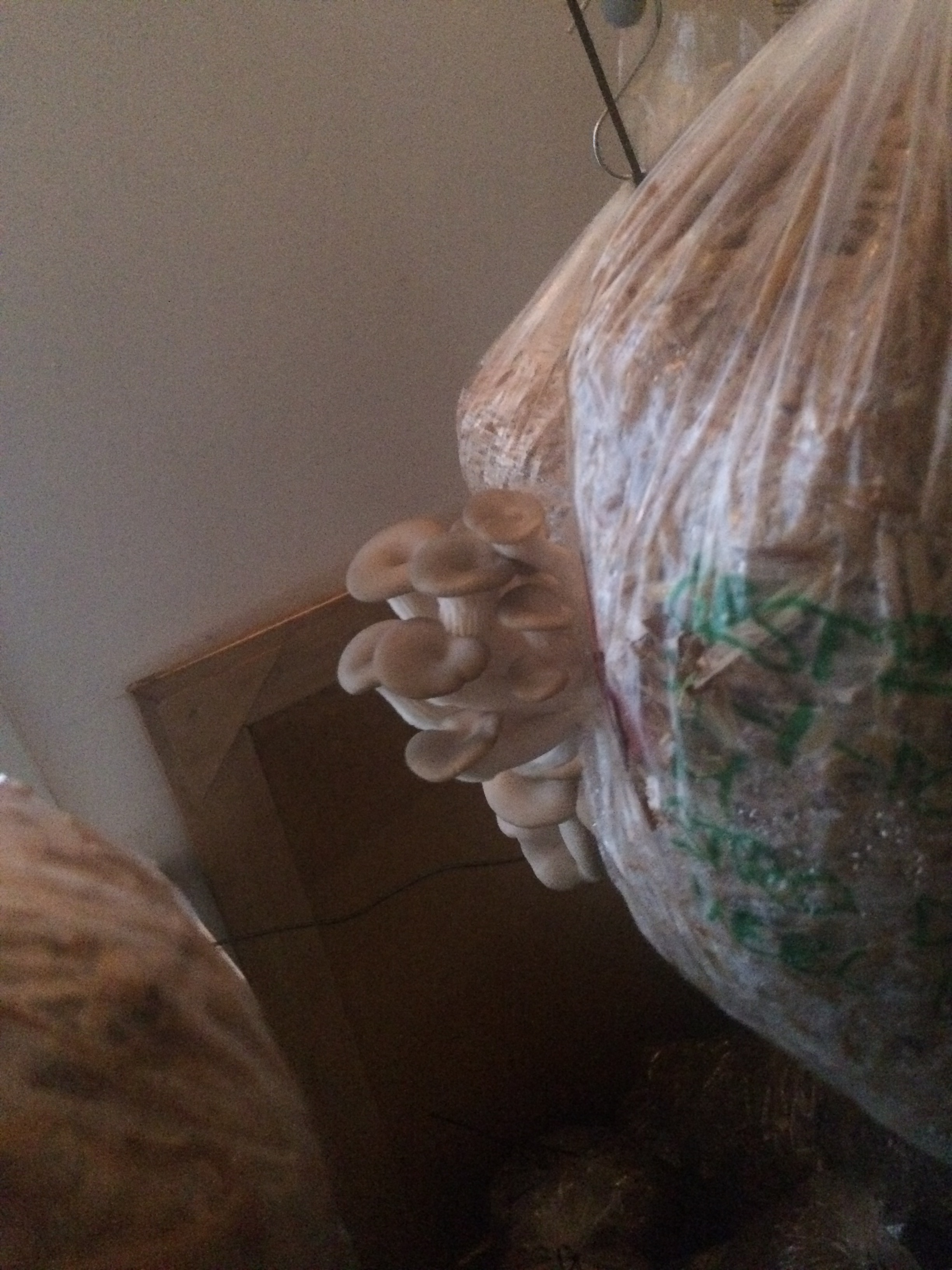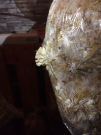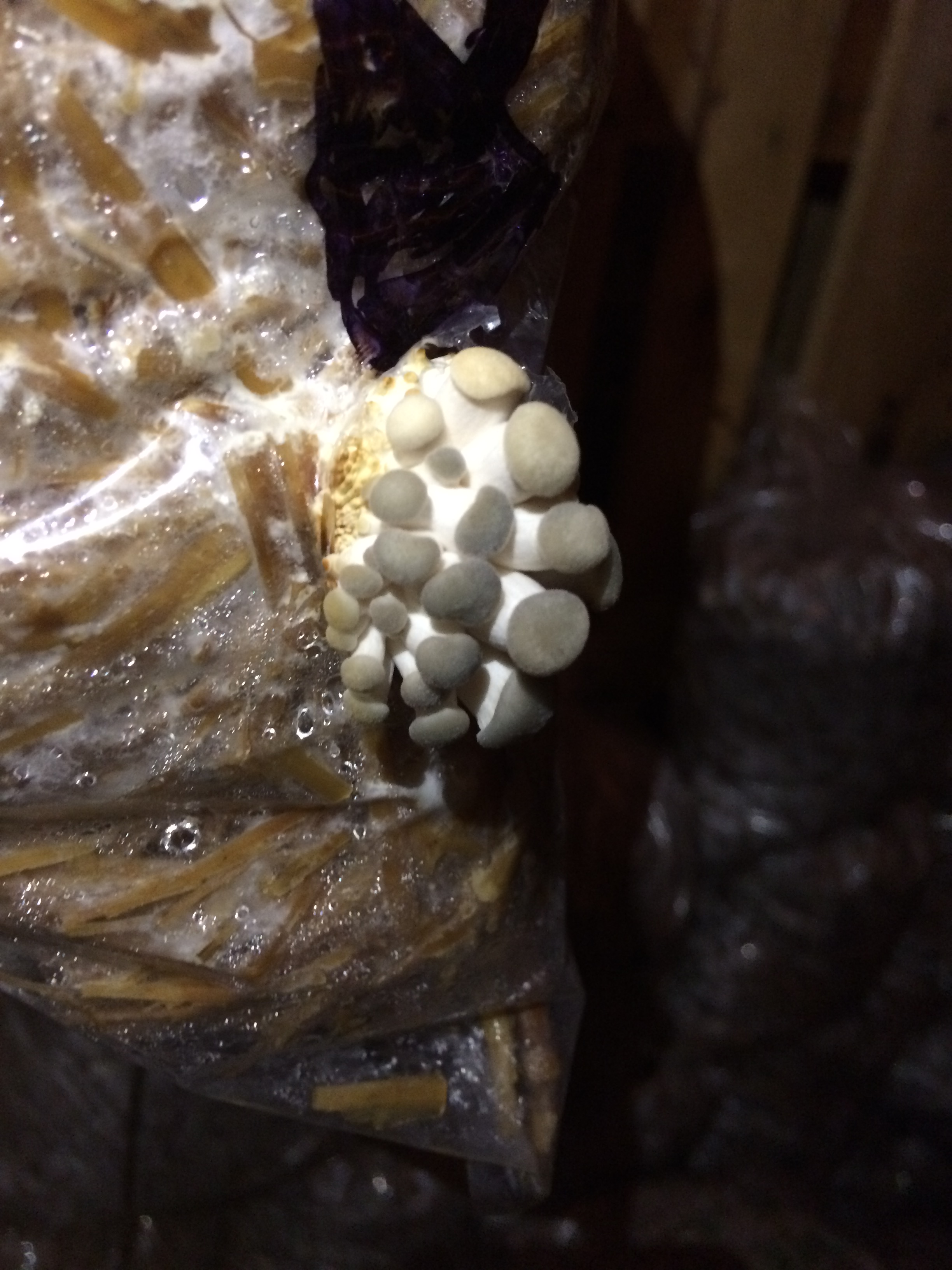 Soms gaat het mis... Balen... 8 zakken Shii Take en 1 zak Oesterzwam met "groentjes". De verkeerde schimmel. Deze zakken kunnen we dus weg gooien