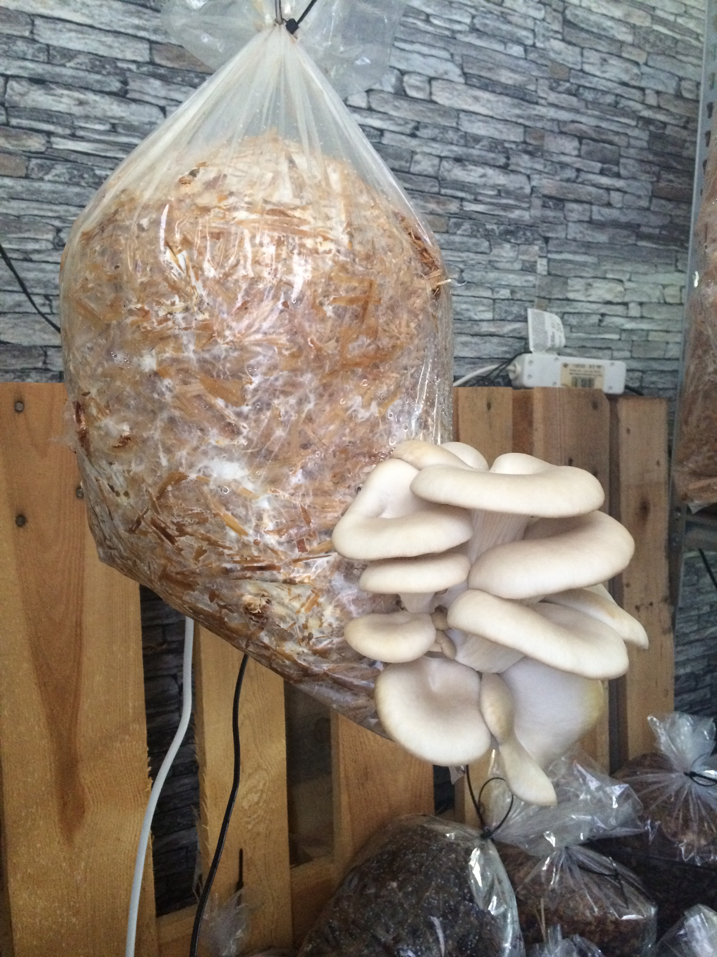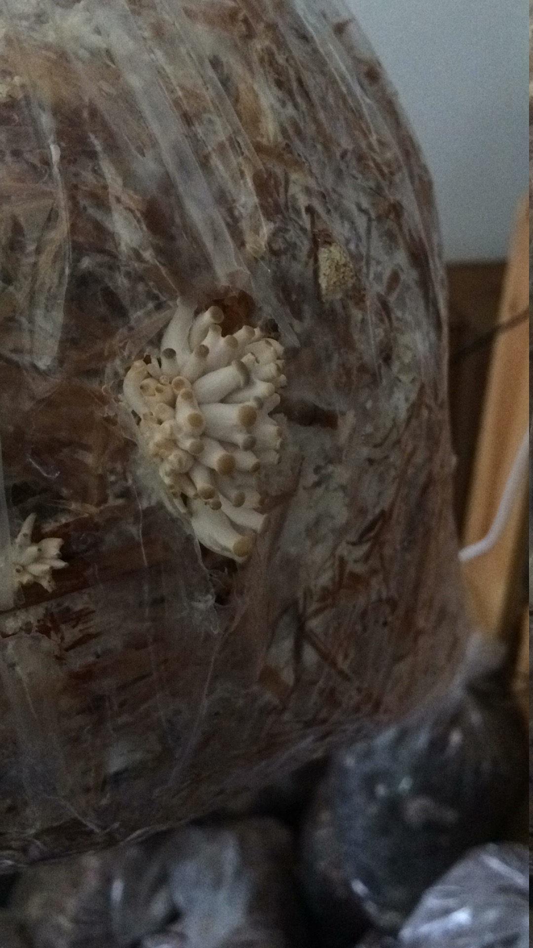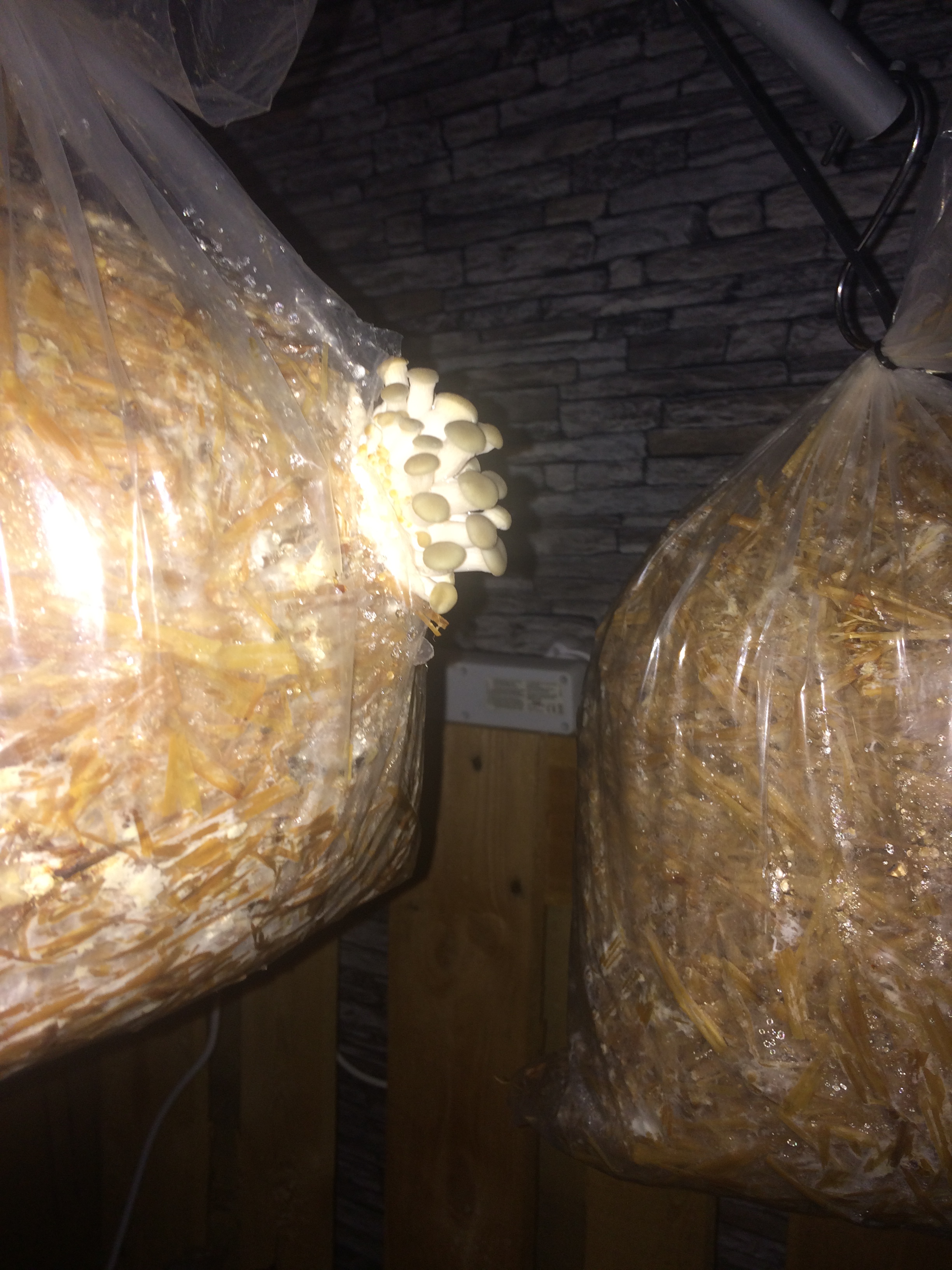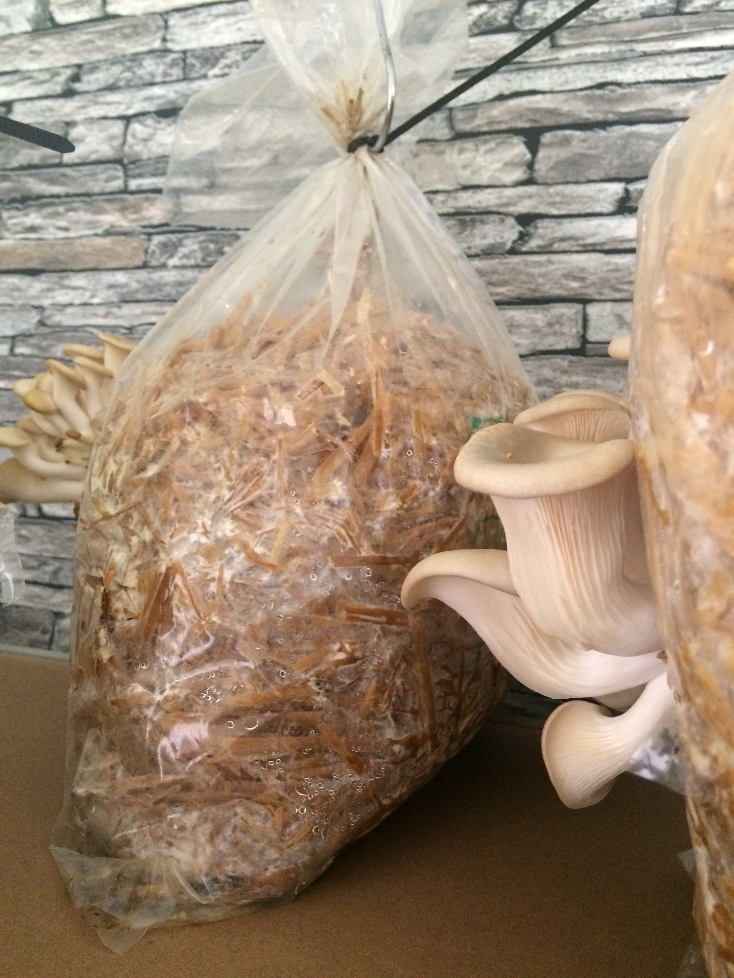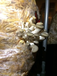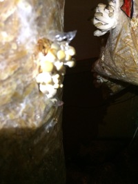 Soms gaat het mis... Balen... 8 zakken Shii Take en 1 zak Oesterzwam met "groentjes". De verkeerde schimmel. Deze zakken kunnen we dus weg gooien