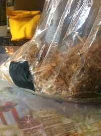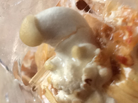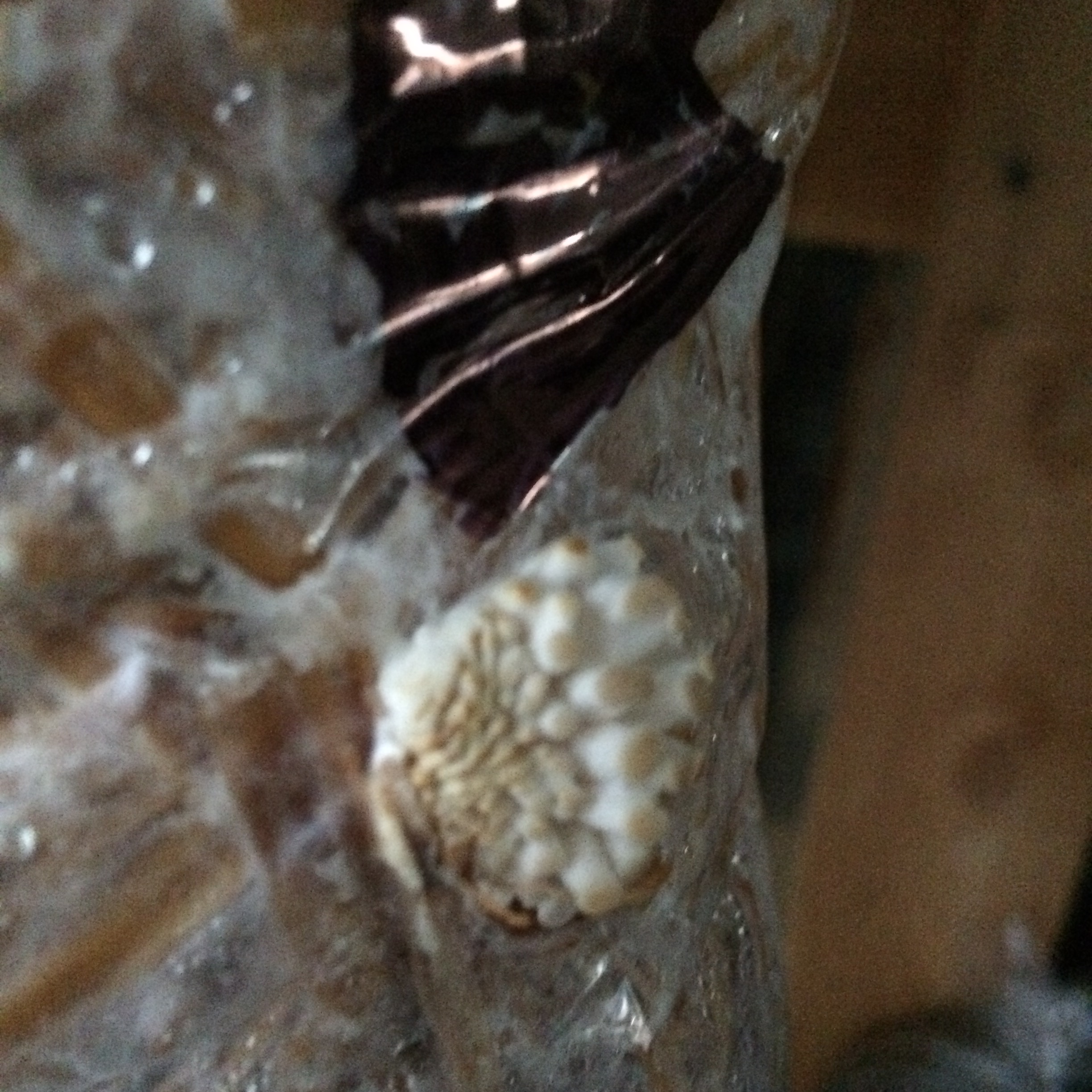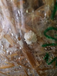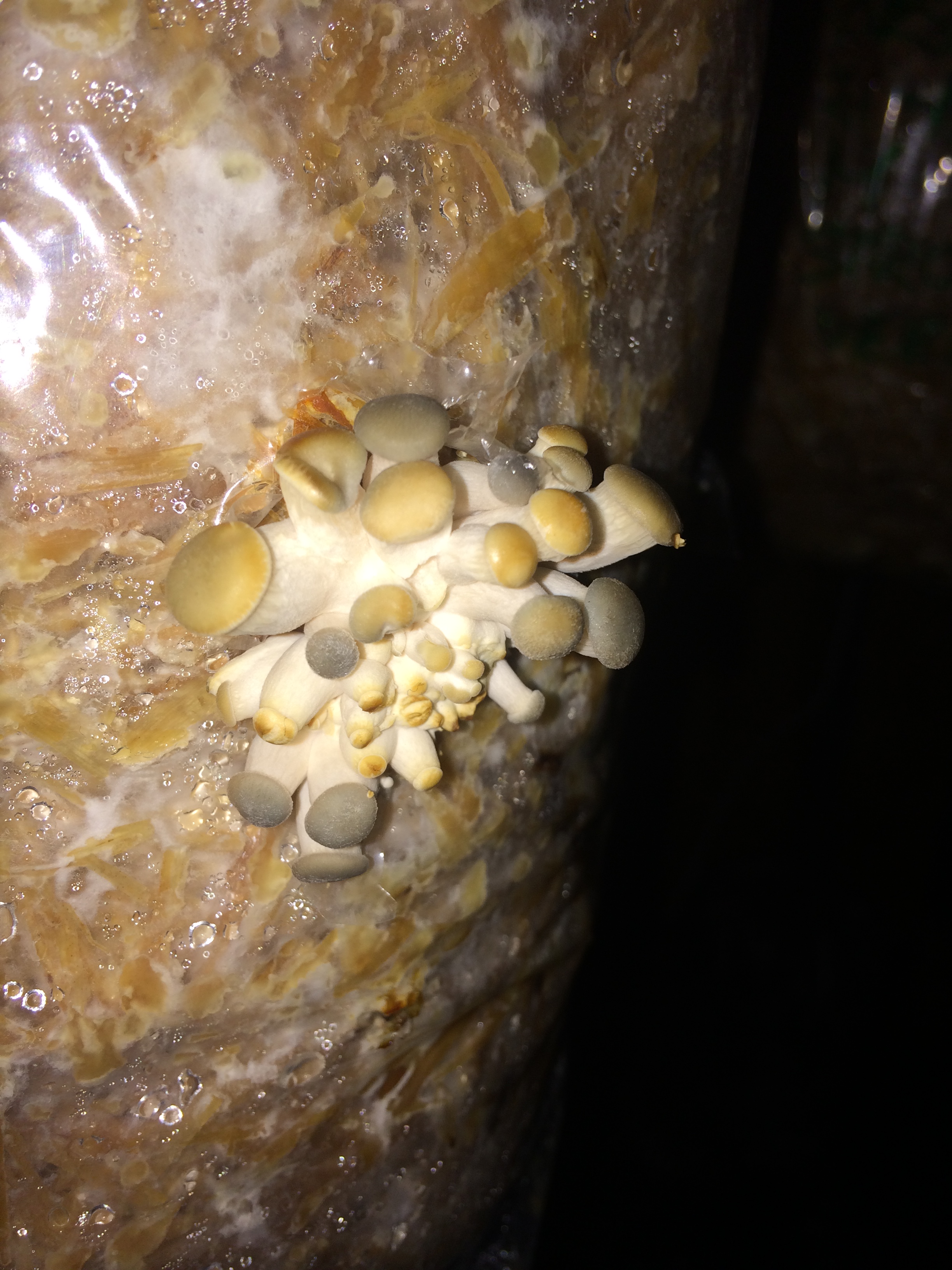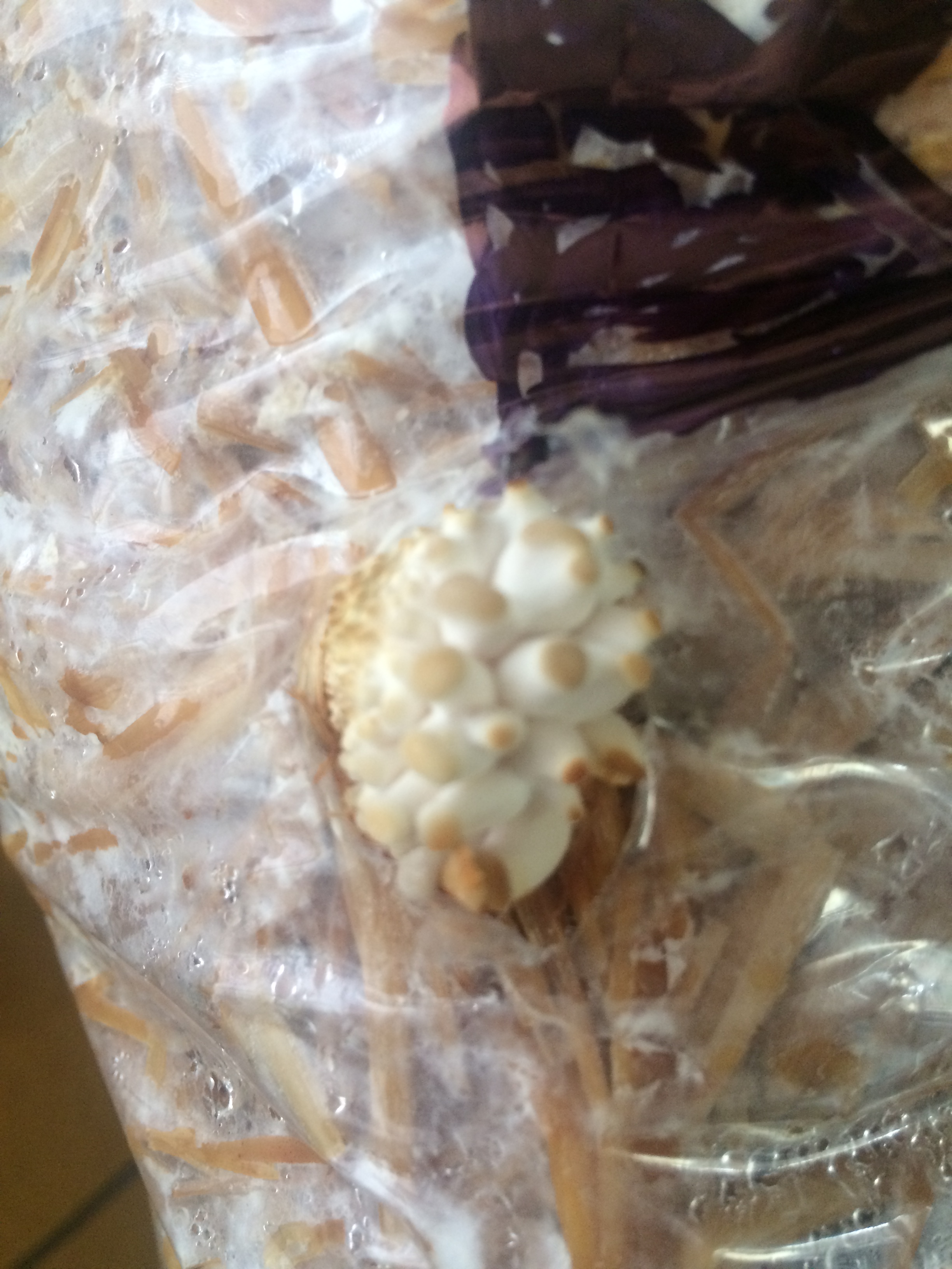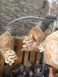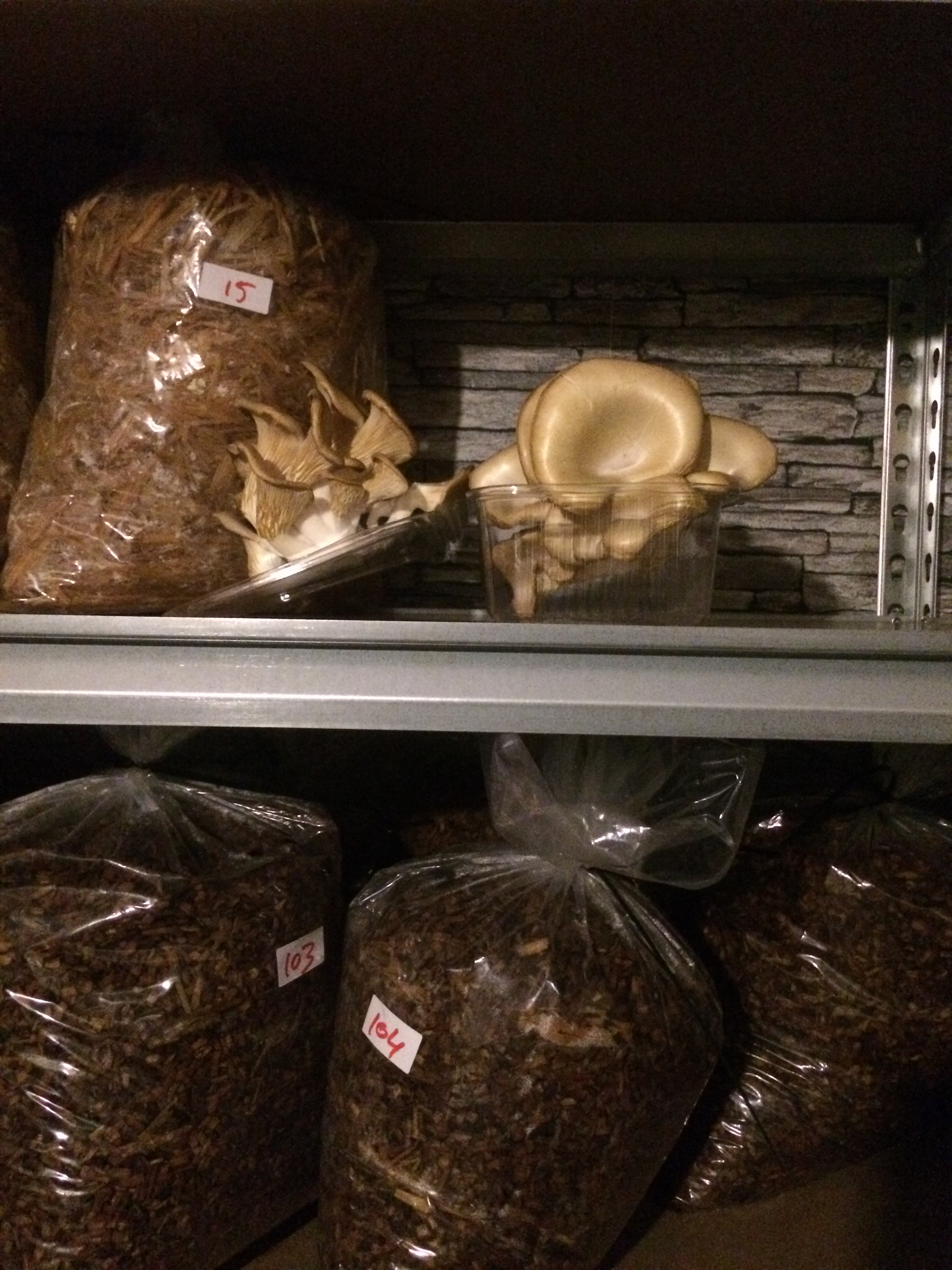 Soms gaat het mis... Balen... 8 zakken Shii Take en 1 zak Oesterzwam met "groentjes". De verkeerde schimmel. Deze zakken kunnen we dus weg gooien