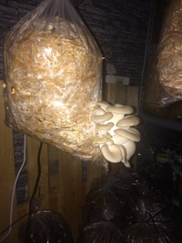 (9-5-18). Eindelijk hebben we het proces in de vingers. Zowaar een leuke hoeveelheid Oesterzwammen. Pfff...