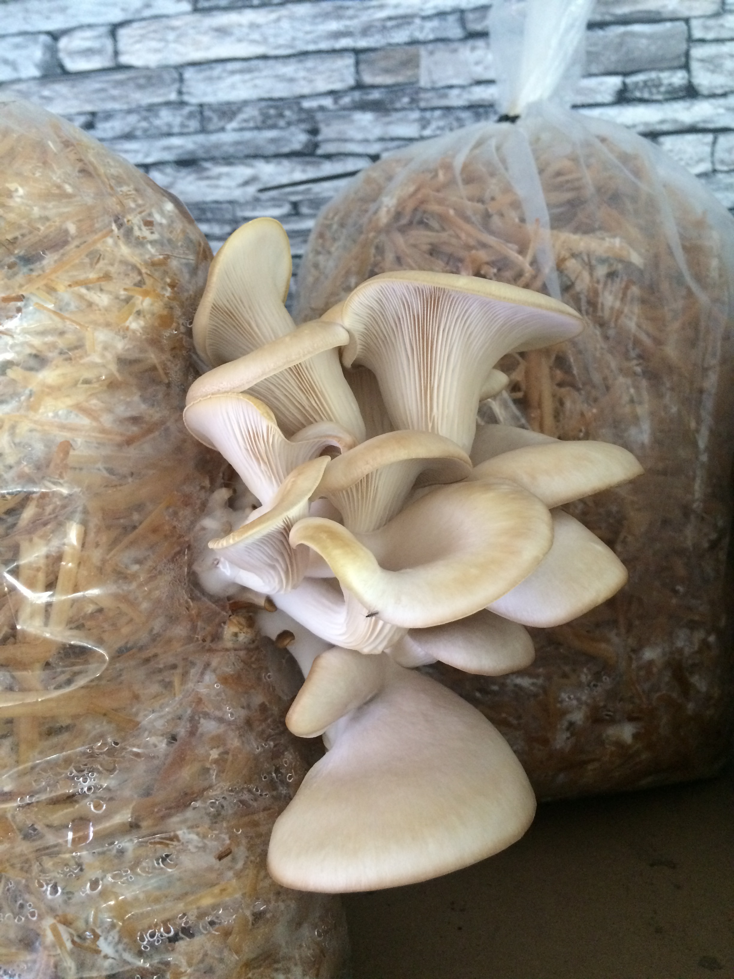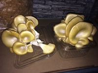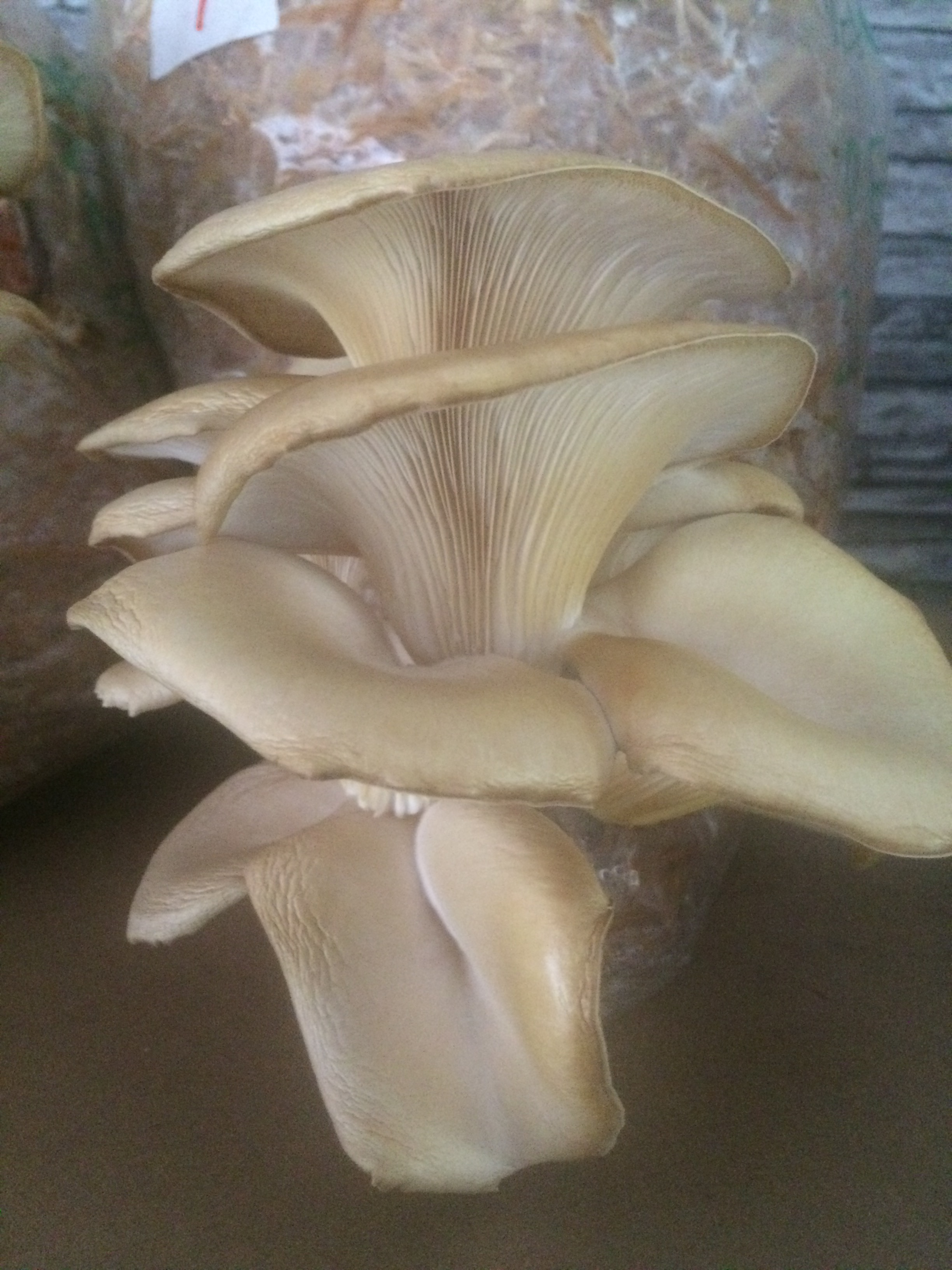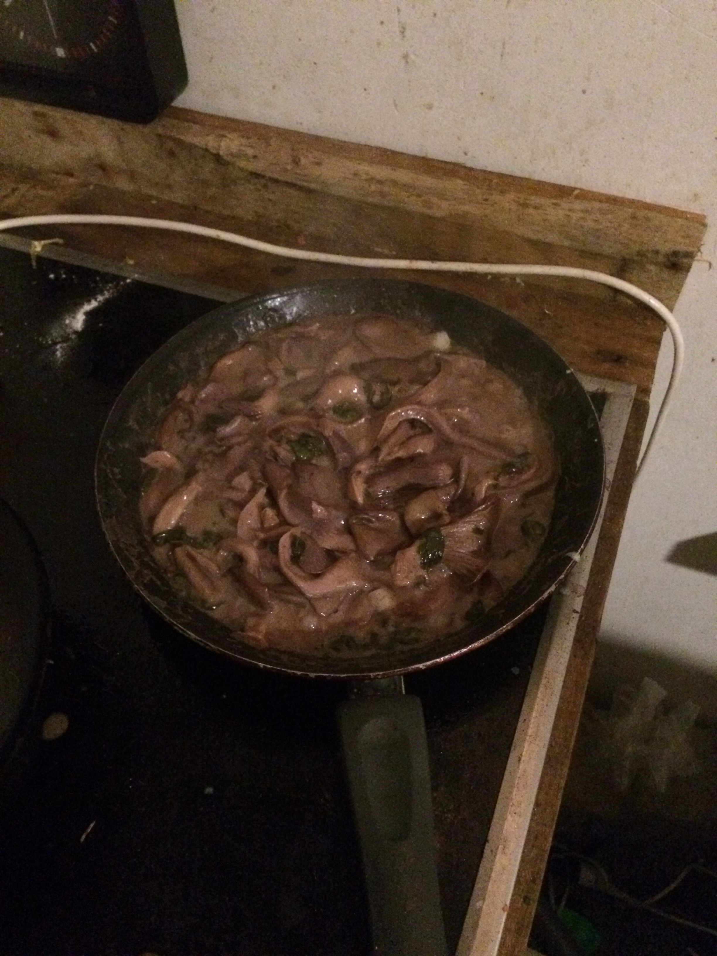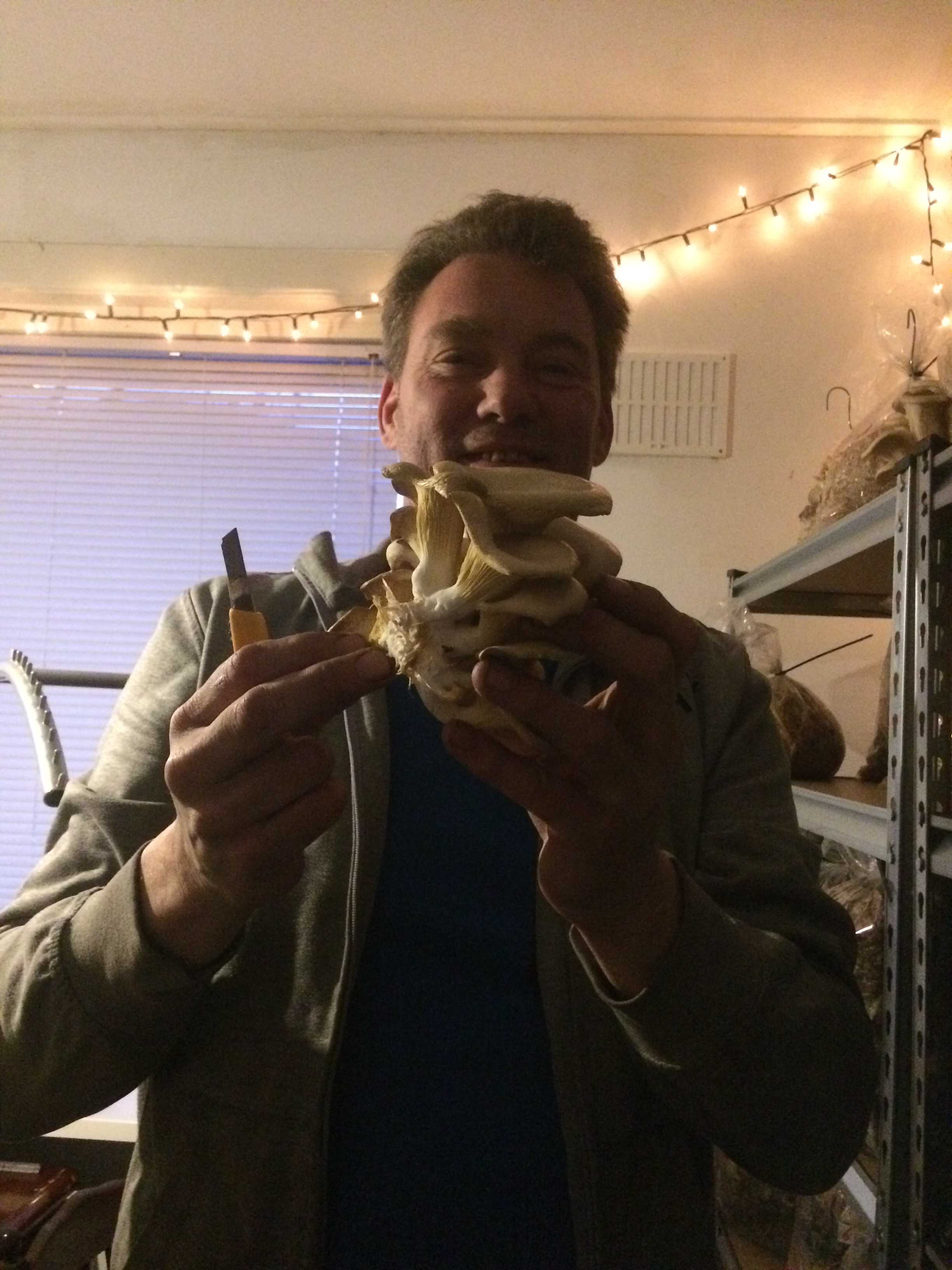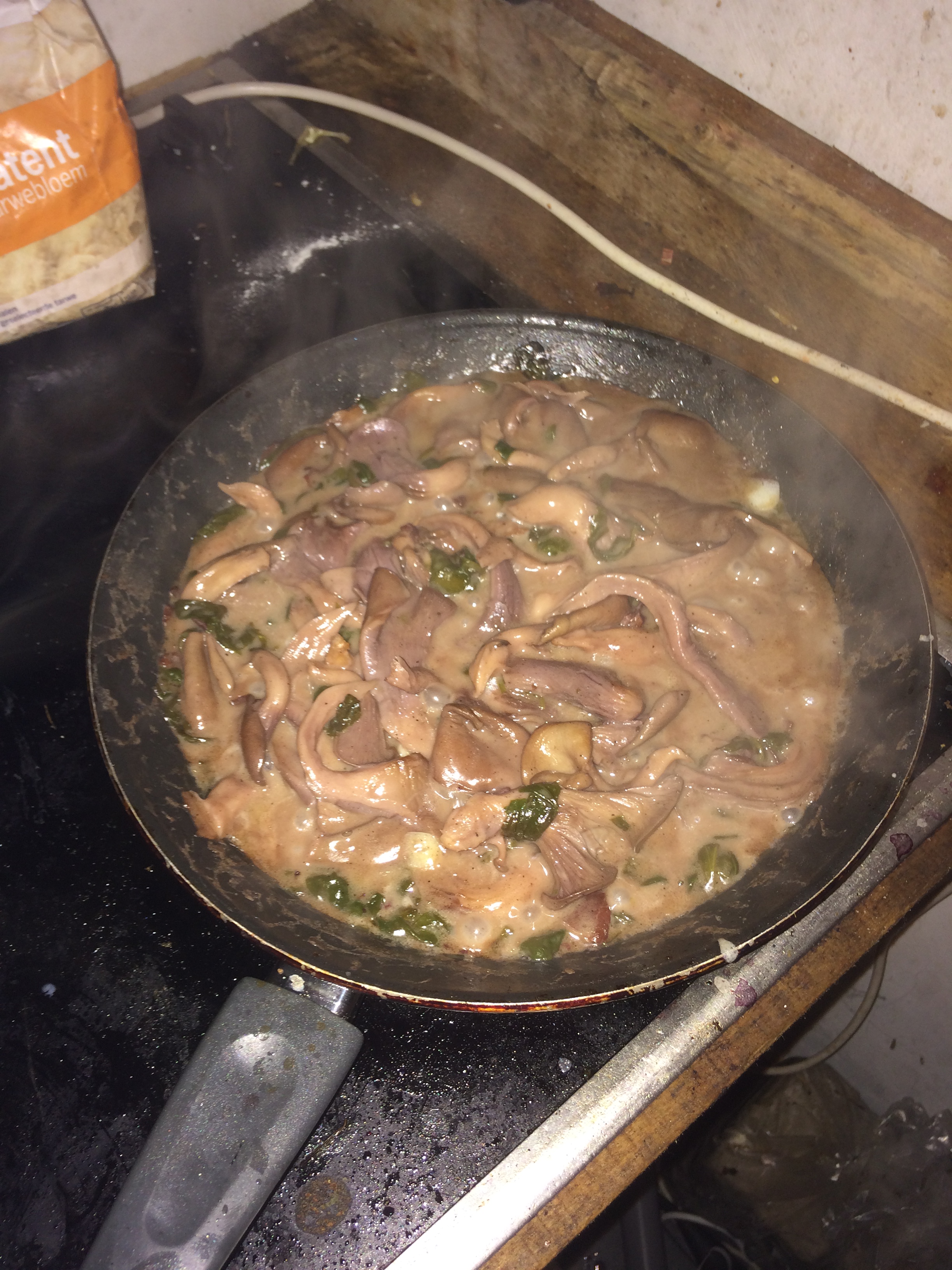 Onze grote dag. Onze eerste oogst. Lekkere "Rode wijn Oesterzwam" gemaakt. Smaakt toppie. Het recept staat op deze website onder recepten.