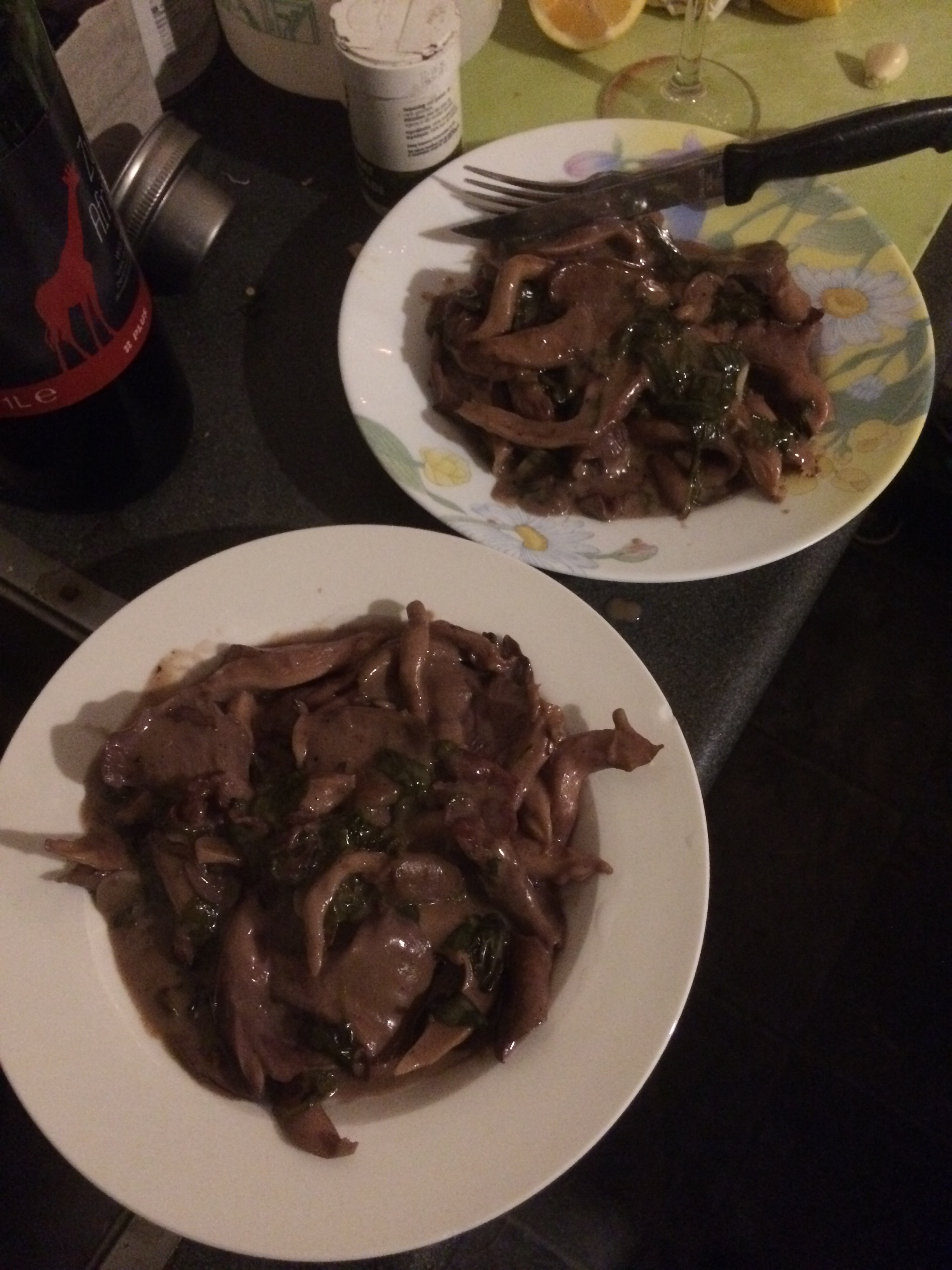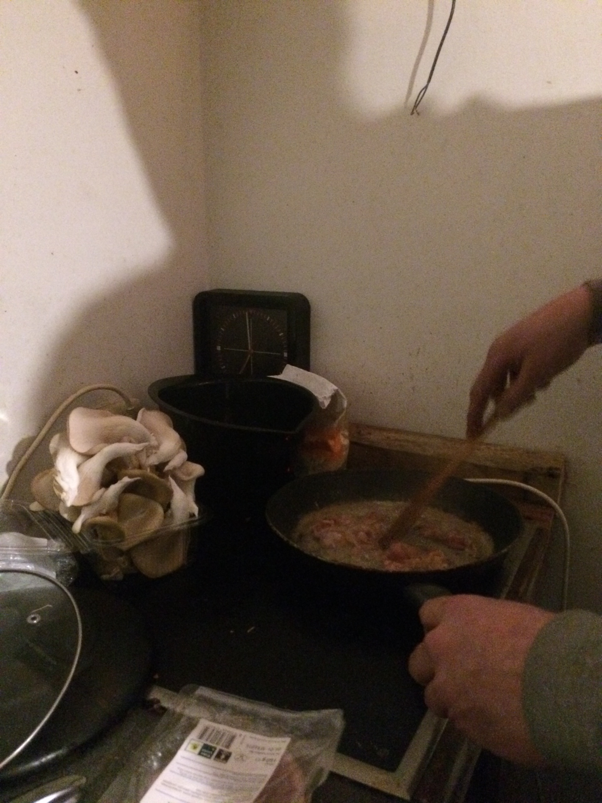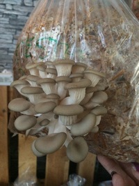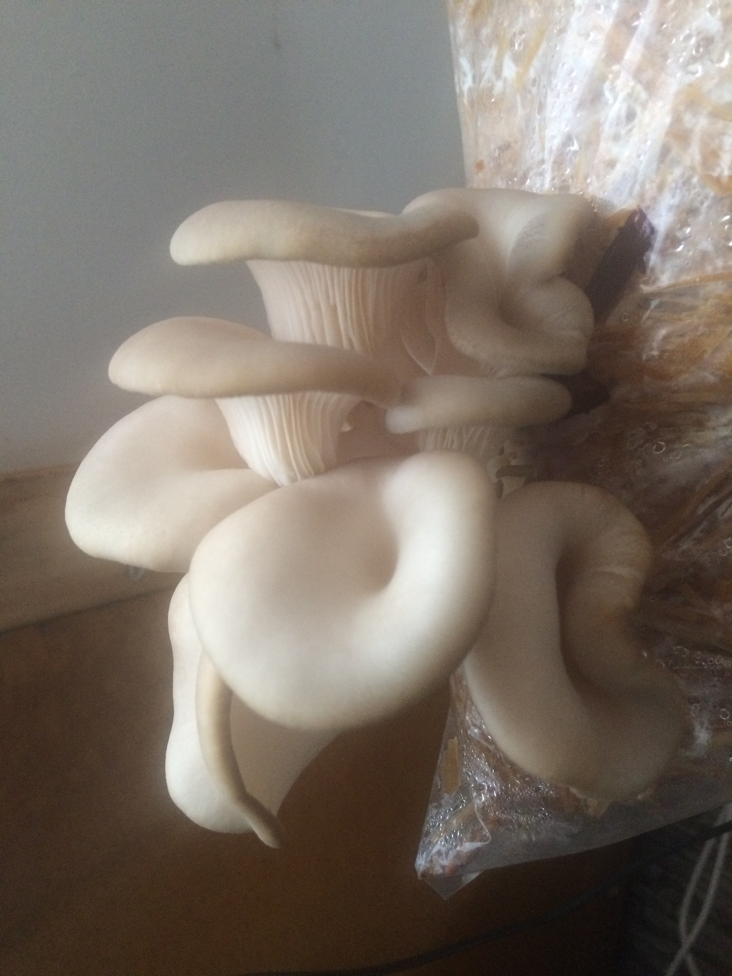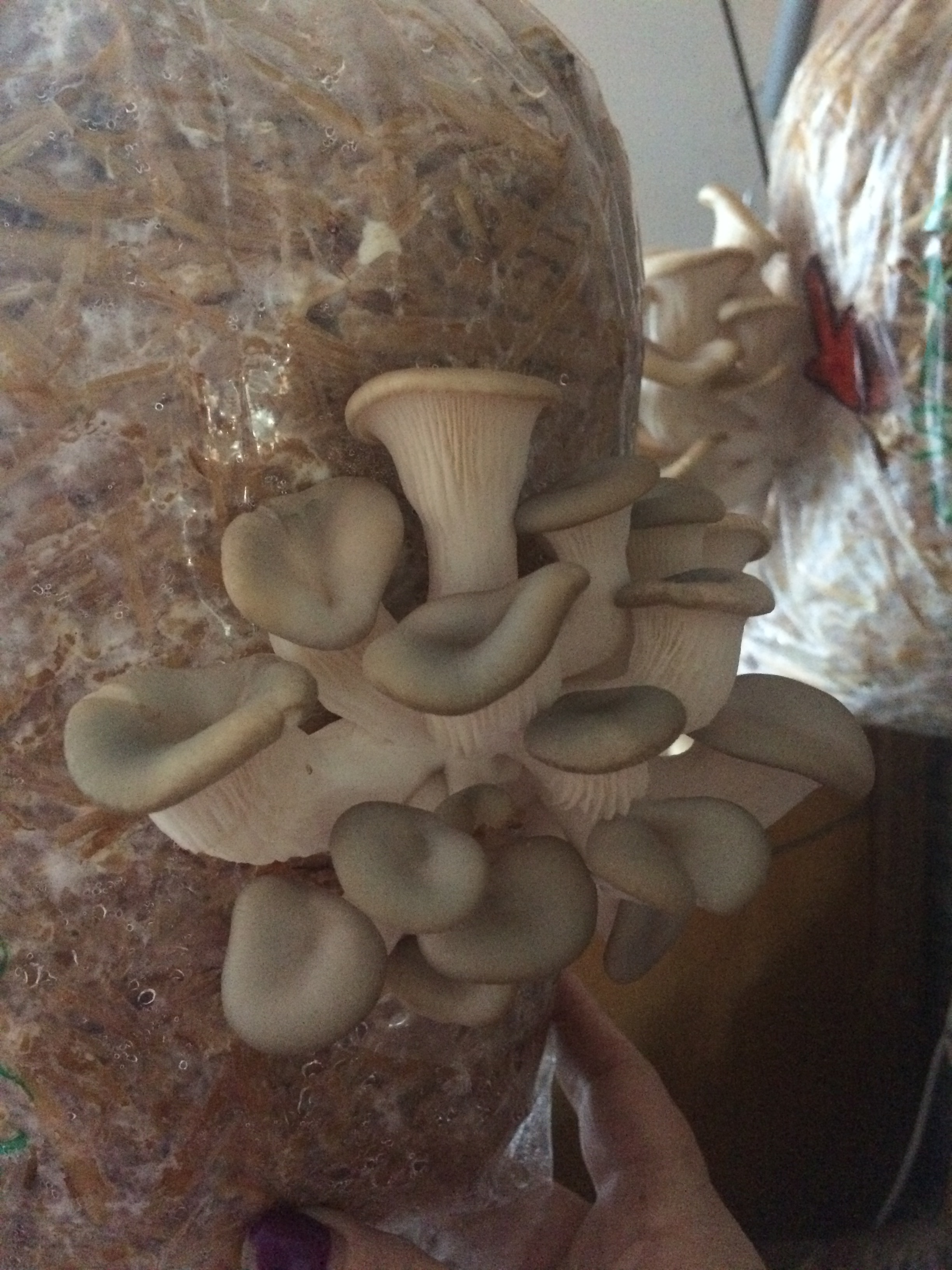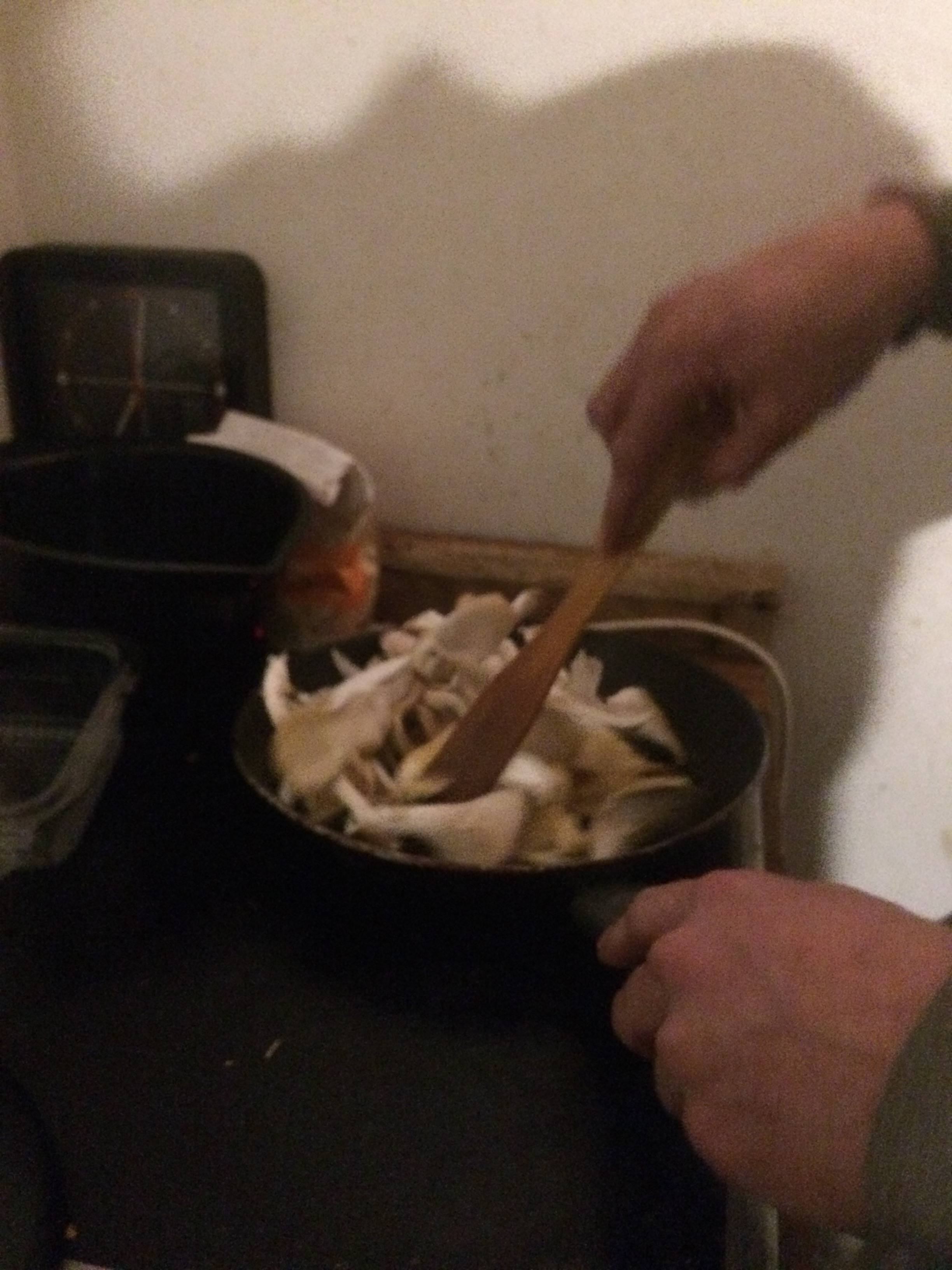Onze grote dag. Onze eerste oogst. Lekkere "Rode wijn Oesterzwam" gemaakt. Smaakt toppie. Het recept staat op deze website onder recepten.