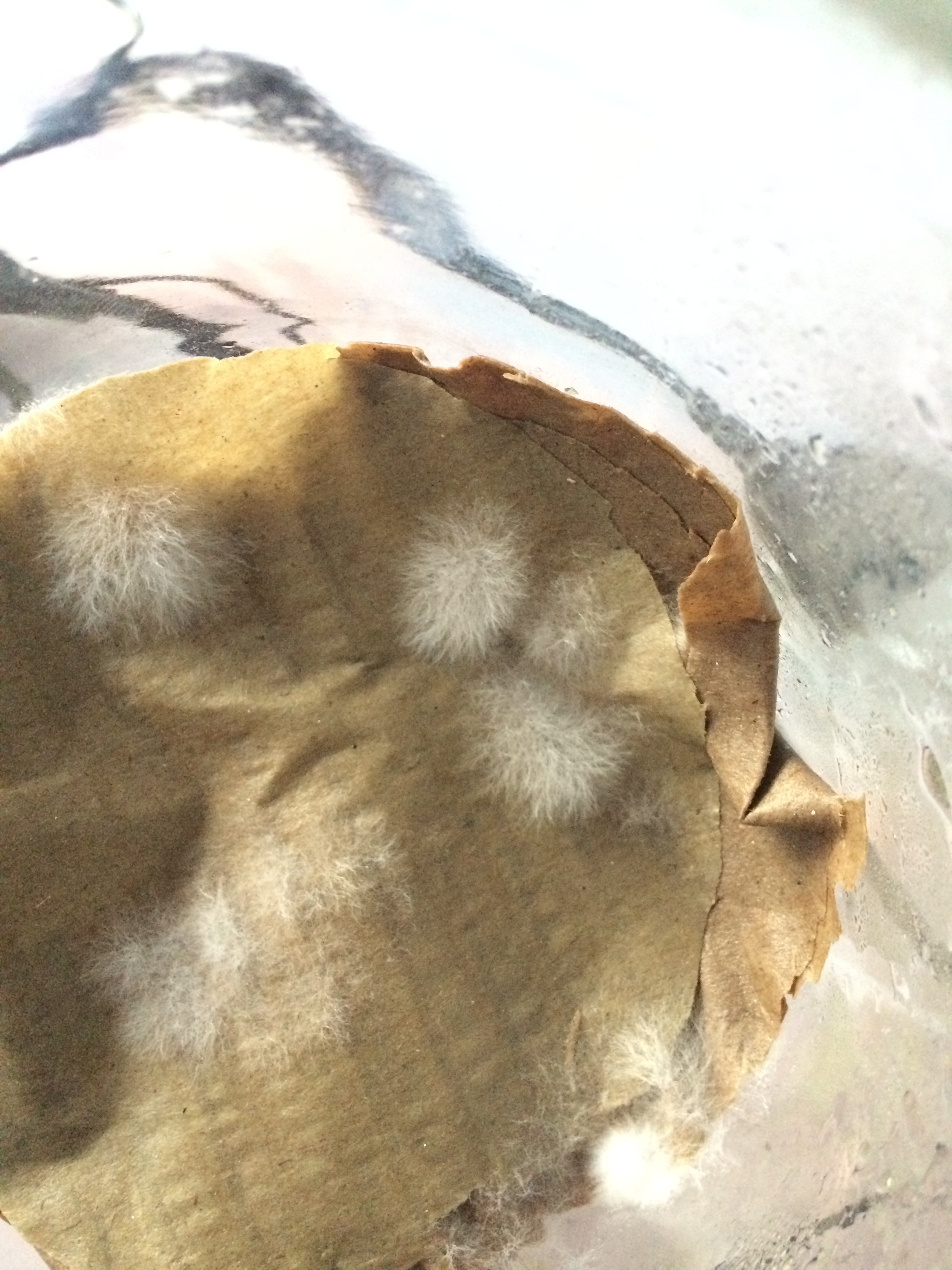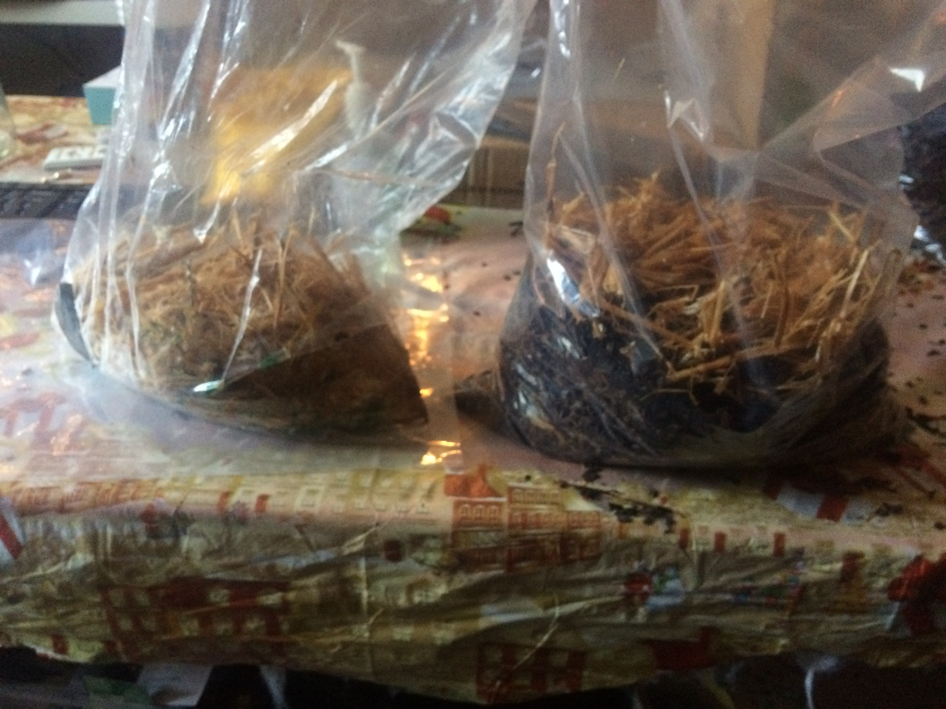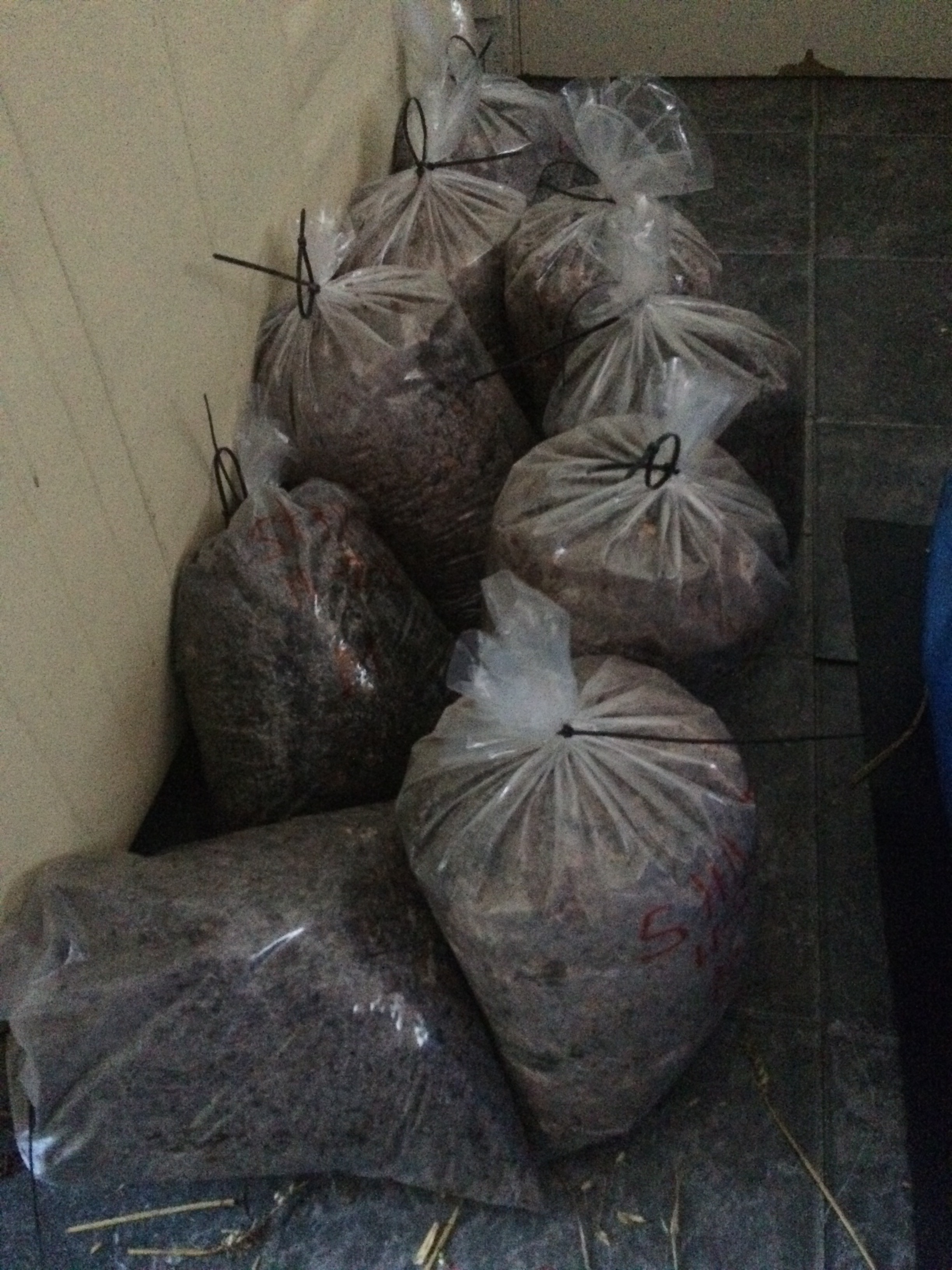 2 weken later. 7 zakken zijn flink beschimmeld. De rest was blijkbaar te droog.