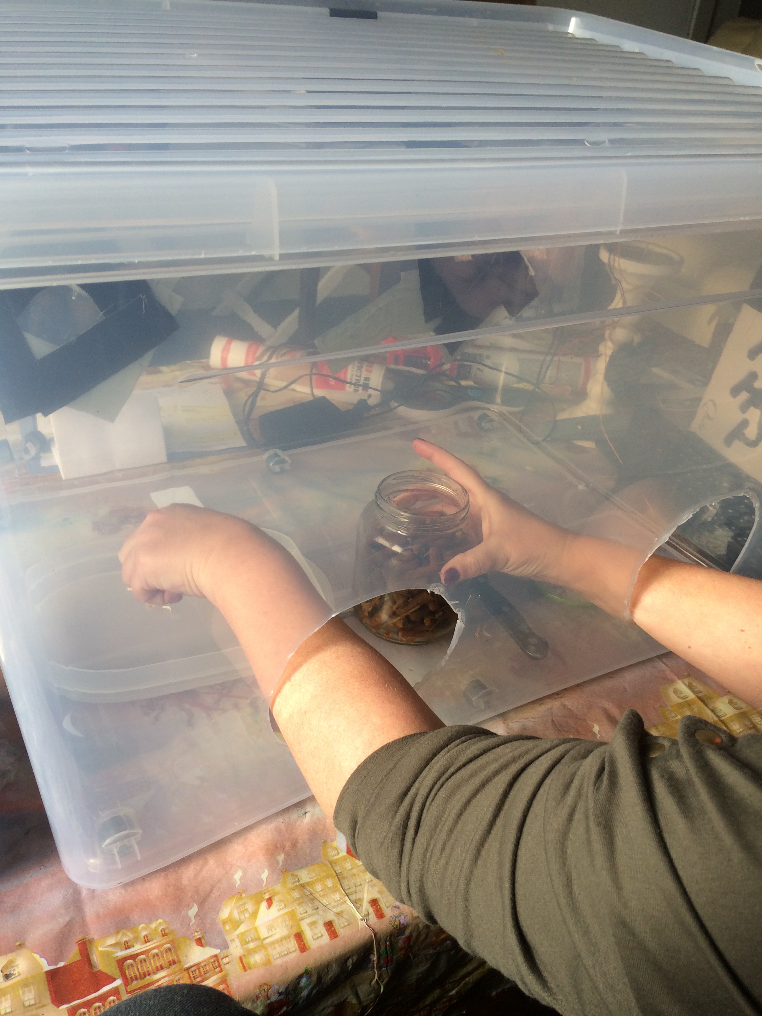 We hebben een nieuwe opstelling van de boerderij. Het lange apparaat is een zelf gebouwde droog kast.