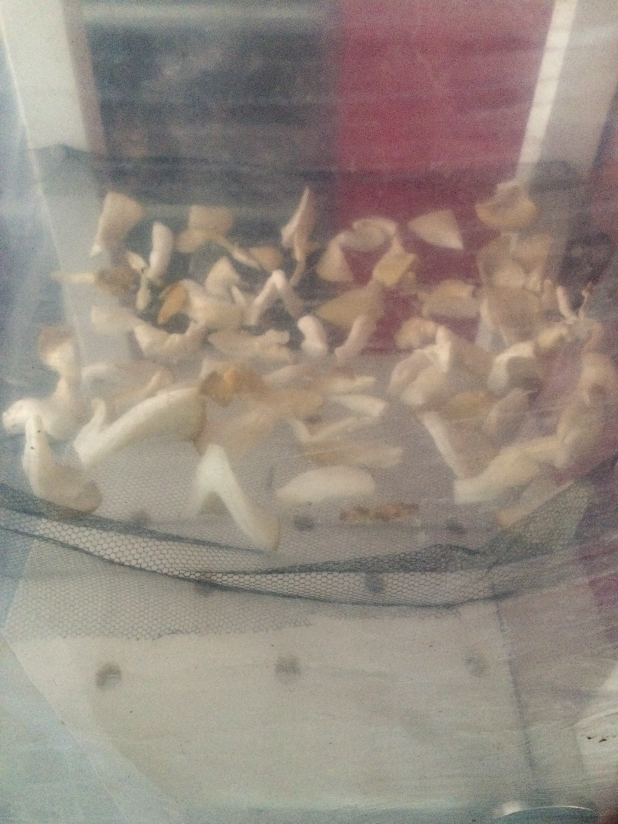 4-3-18. De droogkast word ingewijd. 100gr verse Oesterzwam. Kijken wat er aan drooggewicht van over blijft.