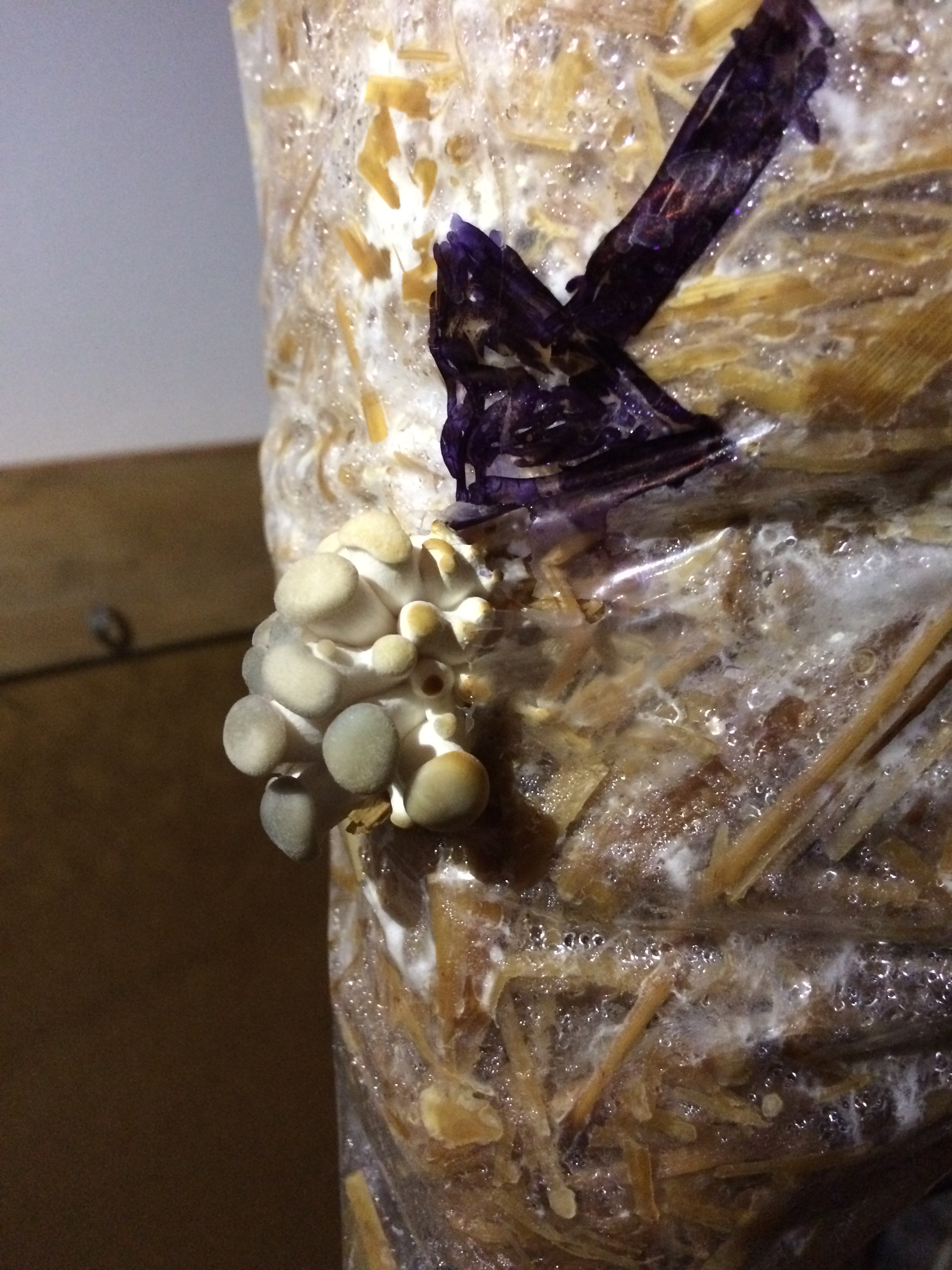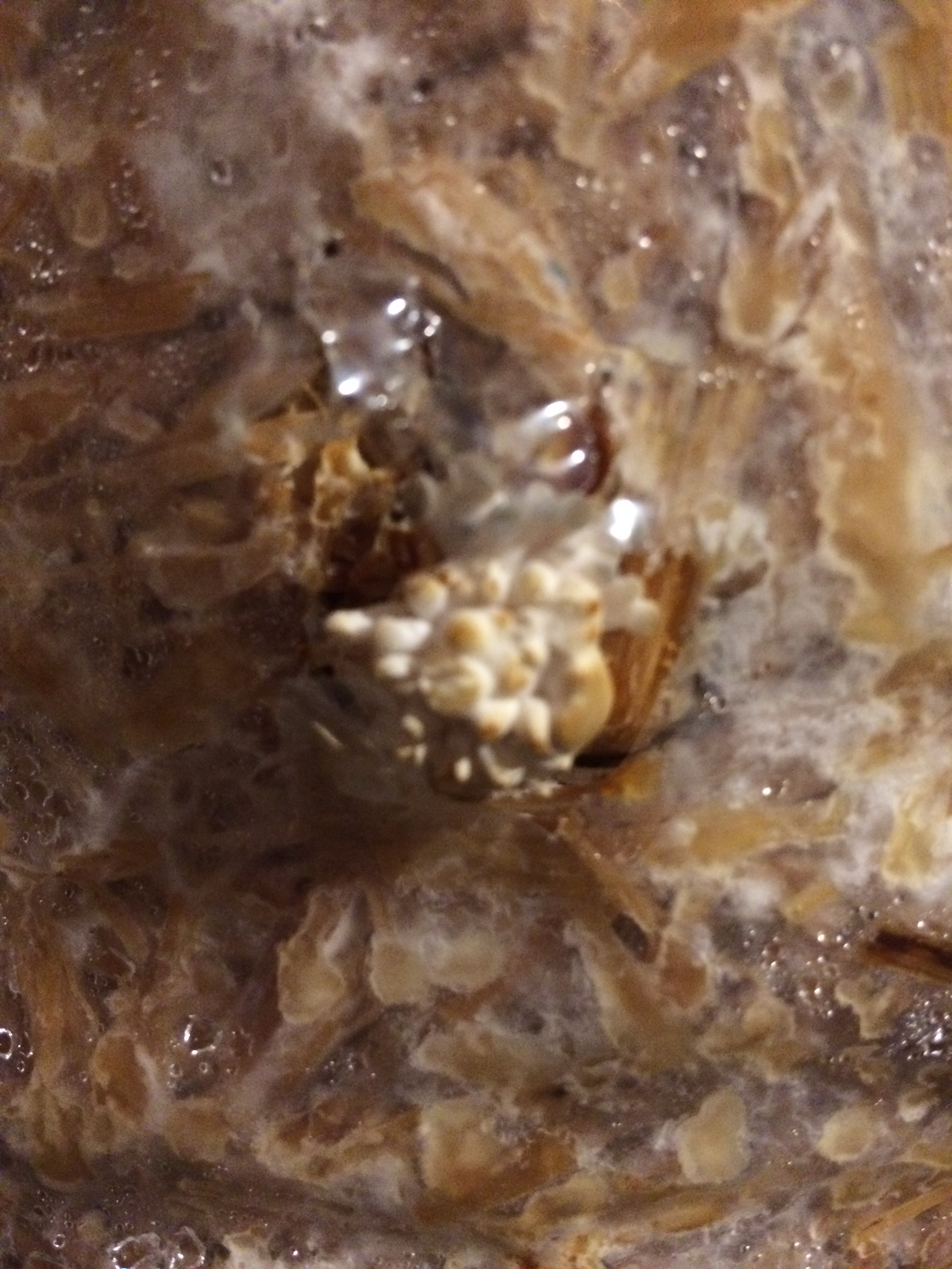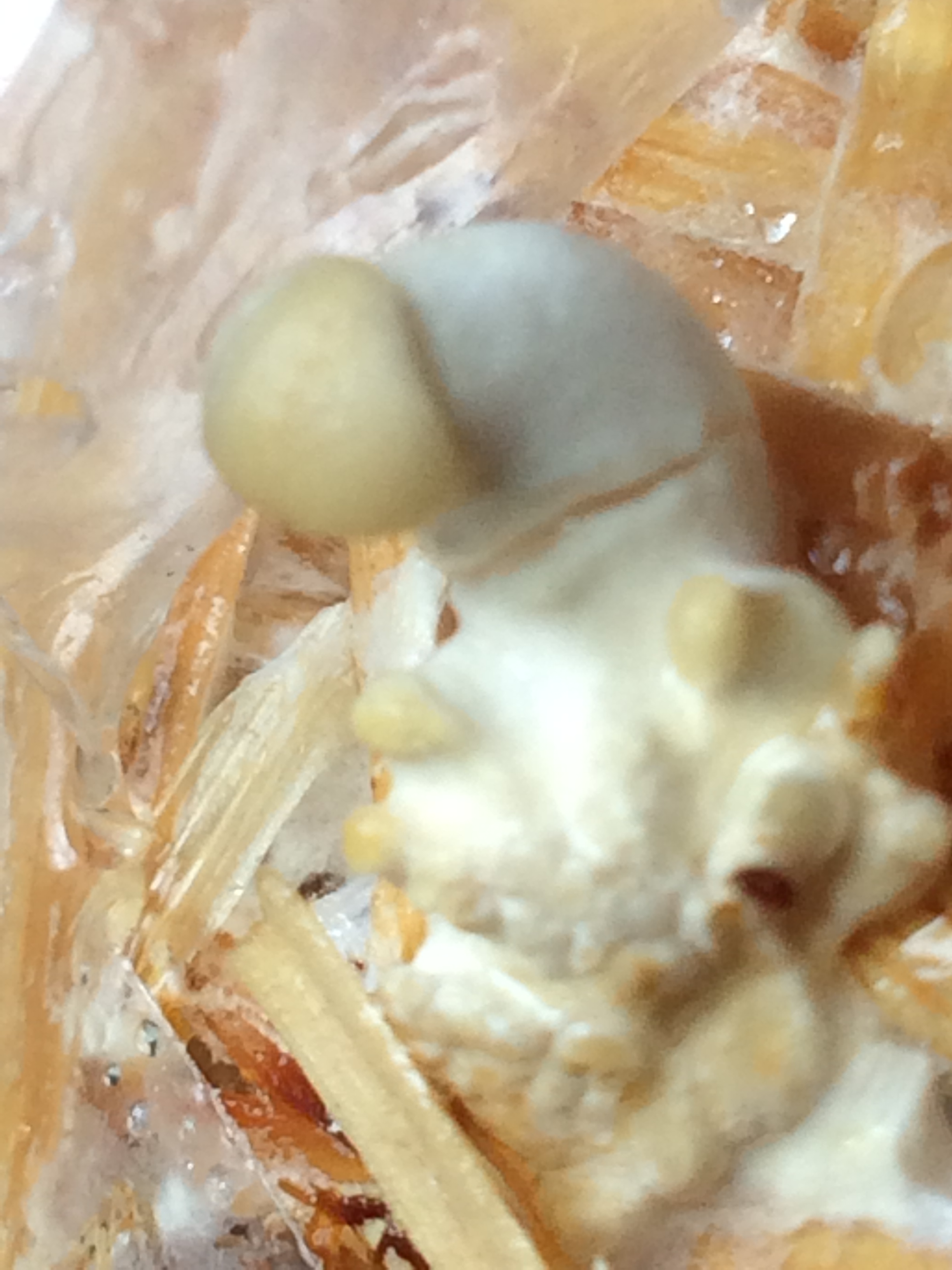 Oesterzwam rogge broed test. Het eerste "witje" is er al.
