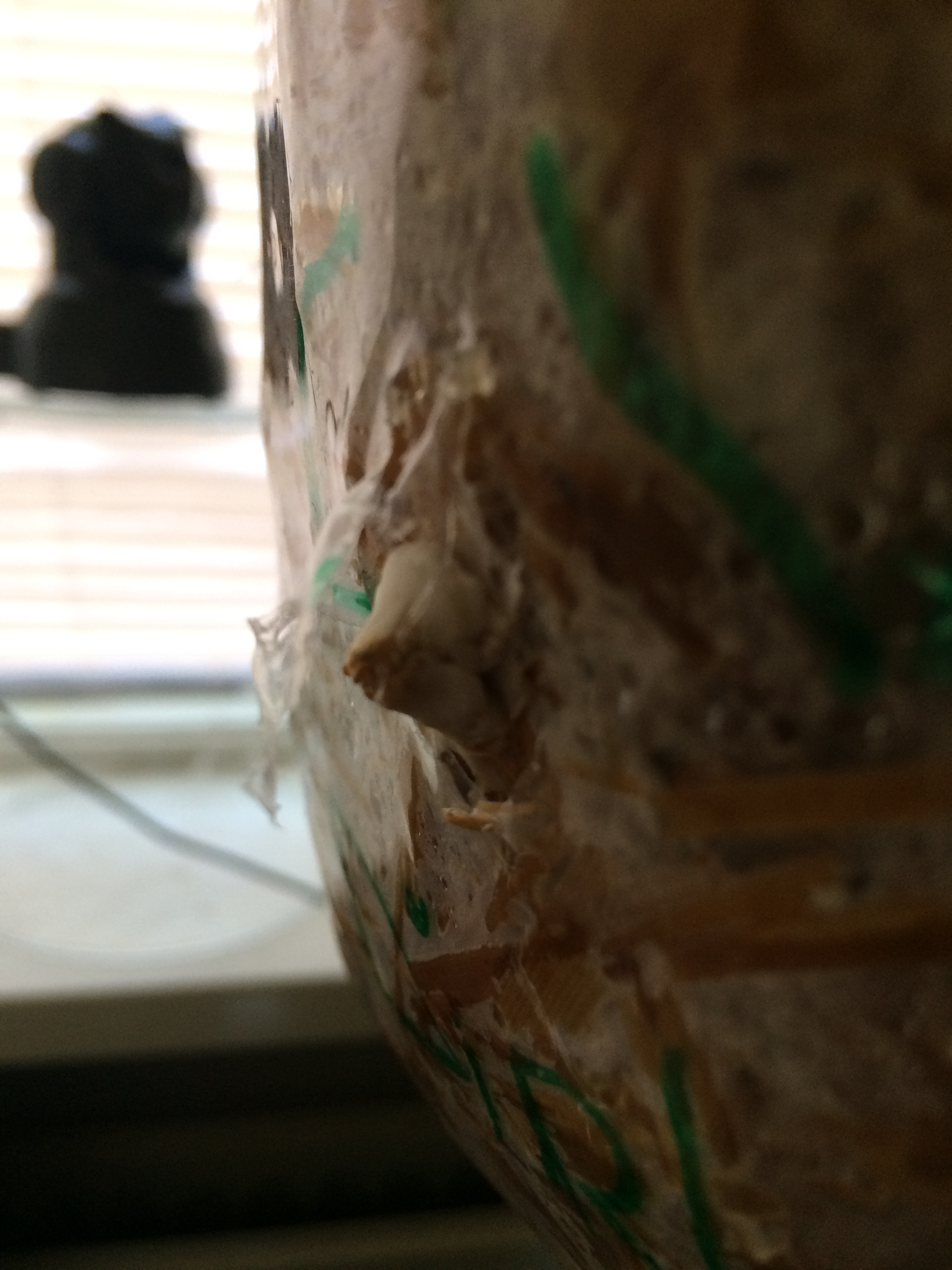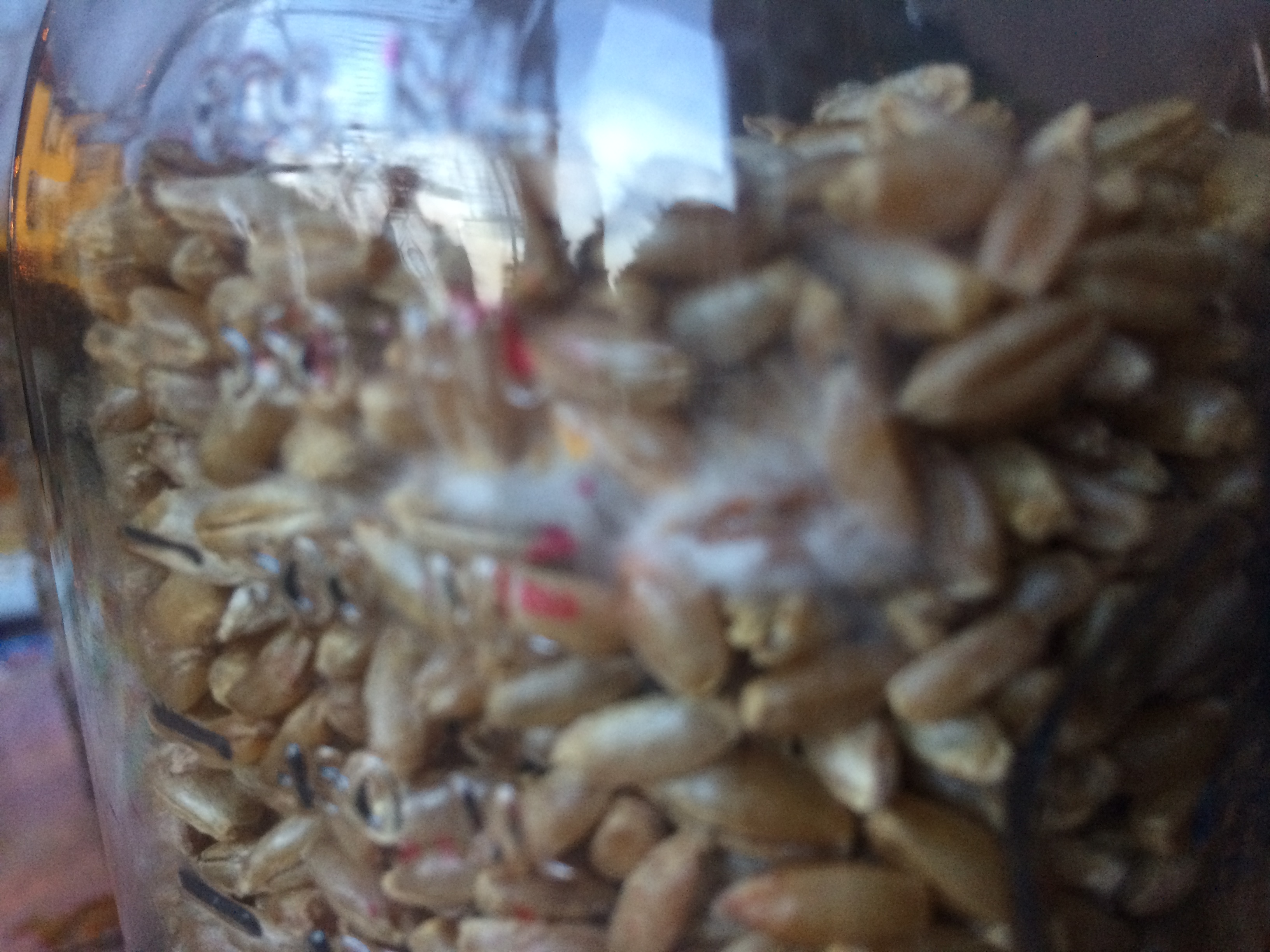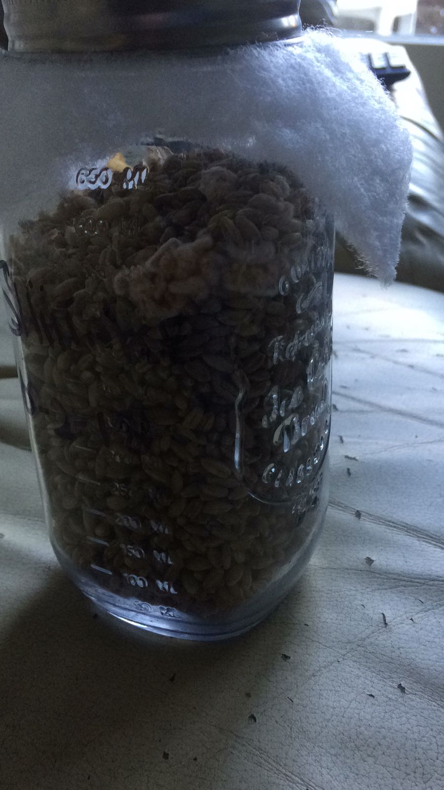 Oesterzwam rogge broed test. Het eerste "witje" is er al.
