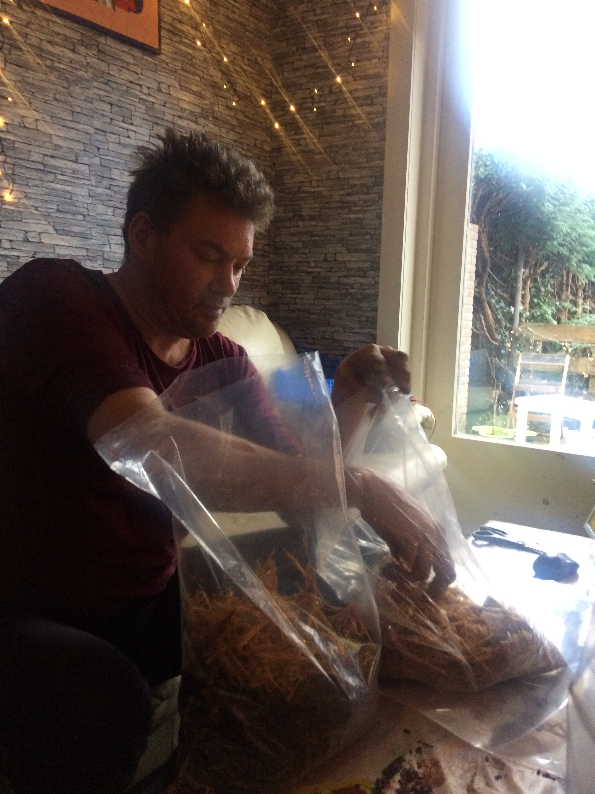 Lekker substraat zakjes vullen op een zondag morgen. Maar nu met Shii Take.
