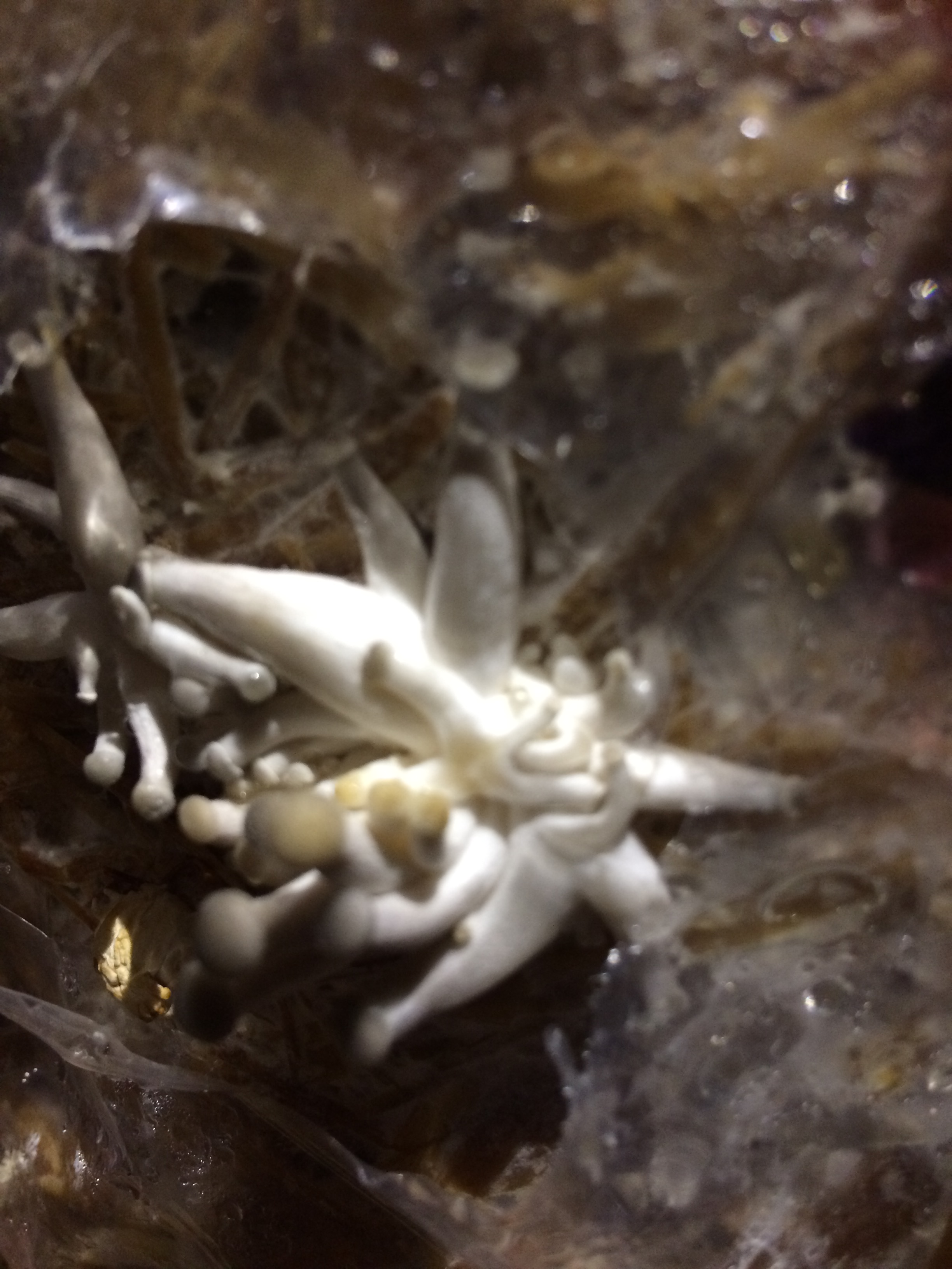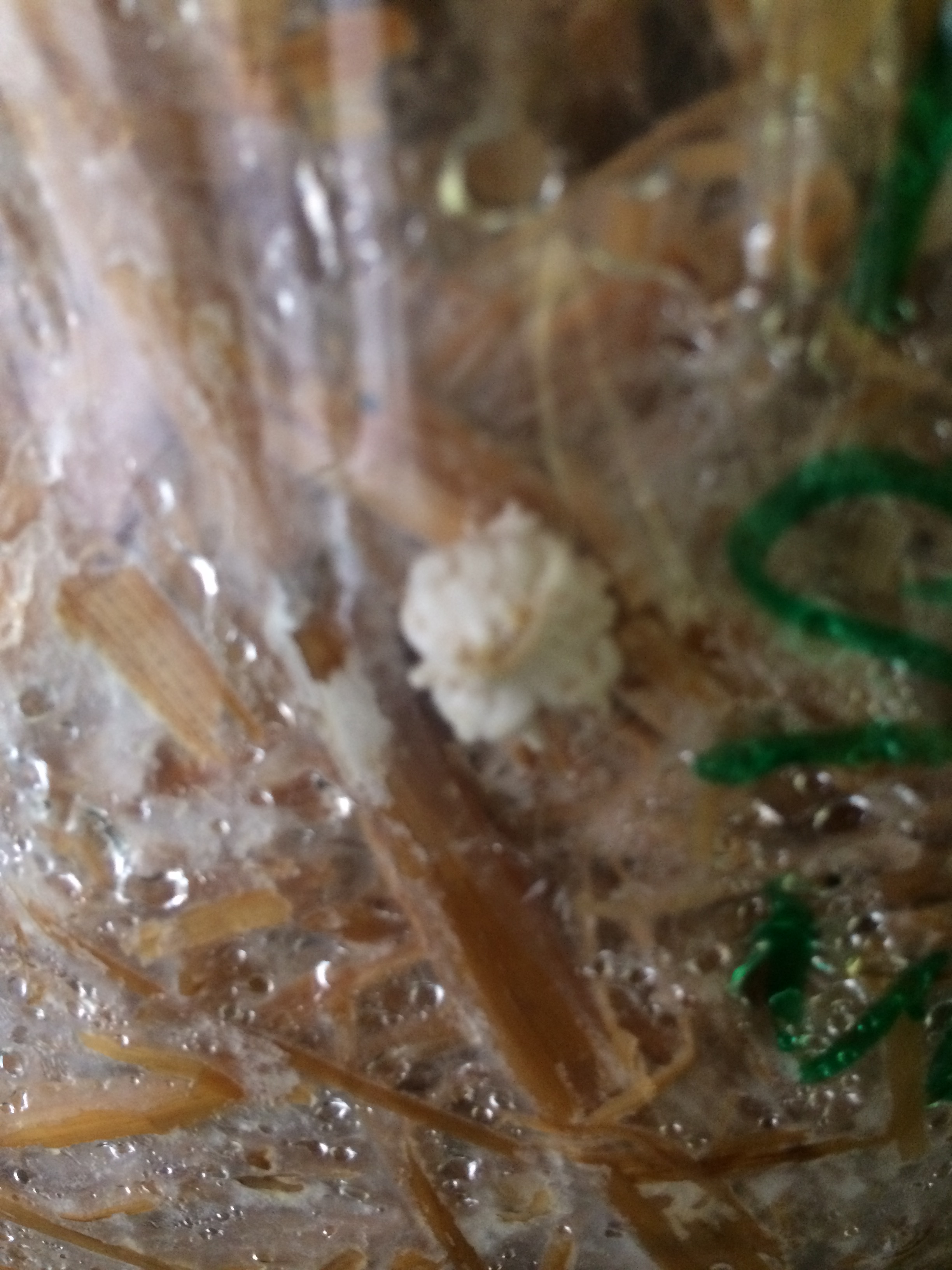 De "witjes" zijn er al. We noemen de puntjes witte mycelium "witjes"